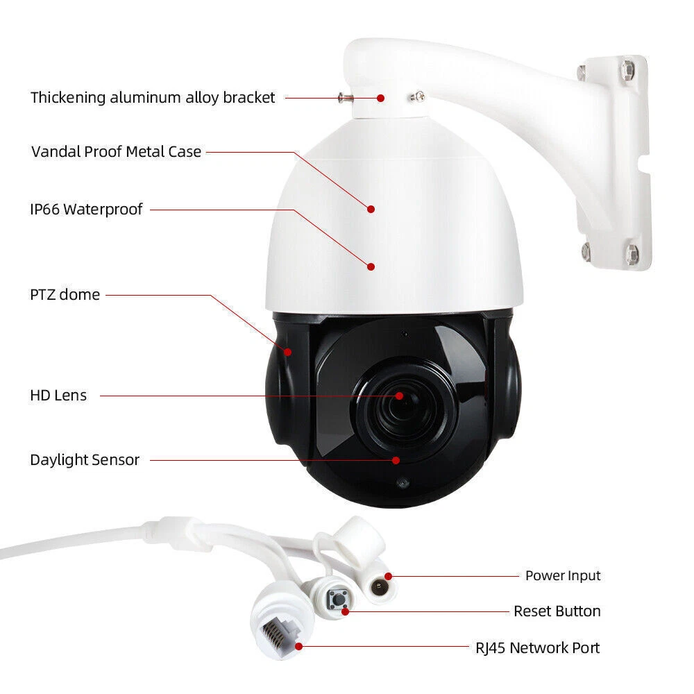 Surveillance Technology: IP/Network Features: IP Intercom, Mini Surveillance Camera, Night Vision, Outdoor/Weatherproof, Pan-Tilt Zoom, Waterproof, Zoom Waterproof level: IP66 Model: iB-4H30X-IS Display Technology: Full Color Color Mode: Color Day, B&W Night Item Height: 190mm×130mm×235mm(L×W×H) Contrast Ratio: Built-in MIC, support voice monitor Response Time: Two Way Audio,P2P Color: White MPN: Does Not Apply Smart Home Protocol: Infrared Connectivity: Wired Voltage: 12 V Item Weight: 3 kg Colour Mode: Full Color, Colour Day, B&W Night UPC: Does not apply Brand: IBirdView Storage Capacity: up to 128GB Number of Cameras Included: 1 Ethernet: RJ45 Ethernet IR Distance: 100m gtin13: Does not apply Power: DC12V 2A/ PoE Rotation angle: Horizon: 0°~355°, Vertical: 0°~90° Location: Indoor/Outdoor Maximum Resolution: 3840*2160P Operating Sound Rating: 120 dB Type: PTZ camera Battery Included: No