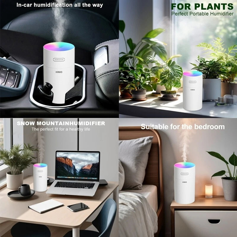 Tabletop Humidifier, ultrasonic, portable, 270ml car humidifier, nanometer fine mist, 2-step humidification volume adjustment, USB powered, timing off About this item: Uses and functions: the USB portable mini humidifier is easy to use in the living room, bedroom, car or office and can be easily inserted into the USB port. It can increase air humidity and improve dry and itchy skin. It also has a relaxing effect. Usage and features: by adding a few drops of water-soluble aromatic oil to the humidifier, the room can be filled with a subtle fragrance to relax the body and mind, and to change your mood while you work or study. The humidifier also uses an improved ultrasonic transducer to fit into quiet areas without disturbing work or sleep, with an operating noise level of approximately 25 decibels. Three types of feeling lamps, convenient to operate: equipped with coloured LED lamps and can switch between three types of lamps by pressing and holding the power button: RGB lamp, gradient lamp, monochromatic lamp, creating a carefree atmosphere. Capacity of the first generation humidifier is approximately 300 ml; capacity of the second generation humidifier is approximately 270 ml; two spray modes: continuous spray mode for 4 hours, intermittent spray mode for 6 hours; safe mode: the humidifier automatically switches off when it runs out of water. 【Caution】 ① Do not use non-water soluble essential oils or perfume fragrances. Otherwise, the cotton wick will clog and render the humidifier unusable. ② Make sure the cotton wick has been soaked for several minutes before switching on. ③ If there are any quality problems, please email us at any time. Description: Second Generation mini Air Humidifier Aroma Oil Diffuser. 270ml water tank. With Colorful Night Light. 2 spray modes adjustable, once press for constant spray, twice for interval spray. 5V 1A micro USB powered, compatible with any device with USB port like laptop, desktop, power bank, socket, power outlet. Aumomtic power off function,4 hours scheduled shutdown time for constant spray, 6 hours for interval spray. Small and lightweight, perfect for home bedroom, office in 20-30 square meters, or portable for car, travel. Specification: Rated input: DC5.0V / 1.0A Working current: 250-350mA Rated power: 1W Water tank capacity: 270ml Spray volume: 25-35ml / h Scheduled shutdown time: 4 hours/6hours Size: 78x119mm/3.07x4.68inch Material: ABS/PP/Electronic components Package Includes: 1 x Second Generation Humidifier 1 x USB Cable 1 x User Manual 1 x Cotton Swab