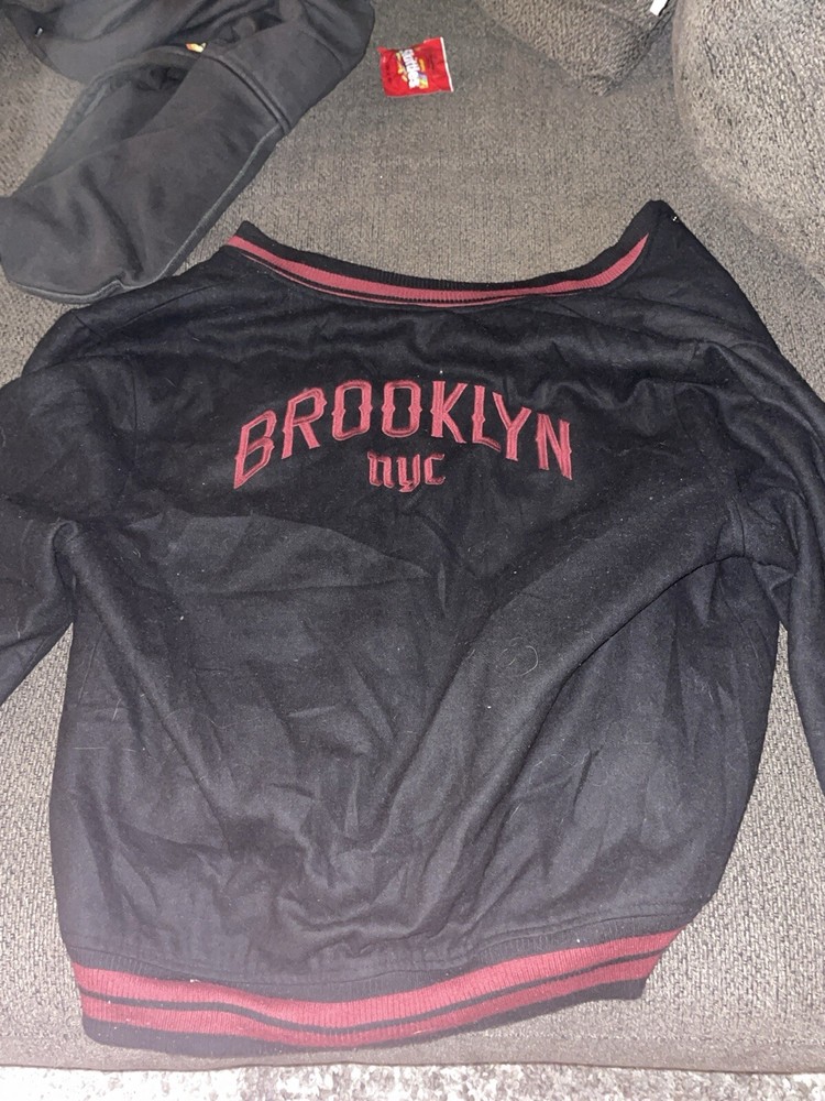 Love this stylish varsity jacket! The wool-polyester blend keeps me warm without being bulky, and the black/burgundy combo looks sharp. Fits true to size, and the pre-owned condition was better than expected—barely any signs of wear. Super comfortable and great for layering. Shipping was fast too! Would definitely buy again.