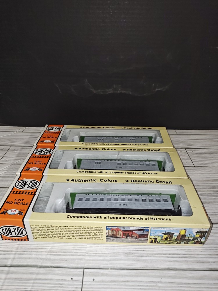 Con-Cor 1/87 HO Scale Maintenance Of Way Train Cars Set Of 3 Collectible Toys. Has some wear from age and storage. See pictures. Sold as is.