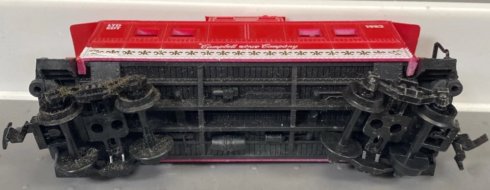 Preowned not perfect still looks good. The HO Scale "Campbell Soup Company - Limited Edition" Freight Train Caboose #3 is a vintage model manufactured in 1982 by Life-Like Products. This limited edition caboose features a red and white color scheme, replicating the iconic Campbell Soup Company branding. It is designed with a two-rail system, AC power type, and digital control system, making it suitable for collectors and model railroad enthusiasts. This highly detailed replica in 1:87 scale is recommended for ages 8 and up, offering a unique addition to any transportation-themed model railroad layout.
