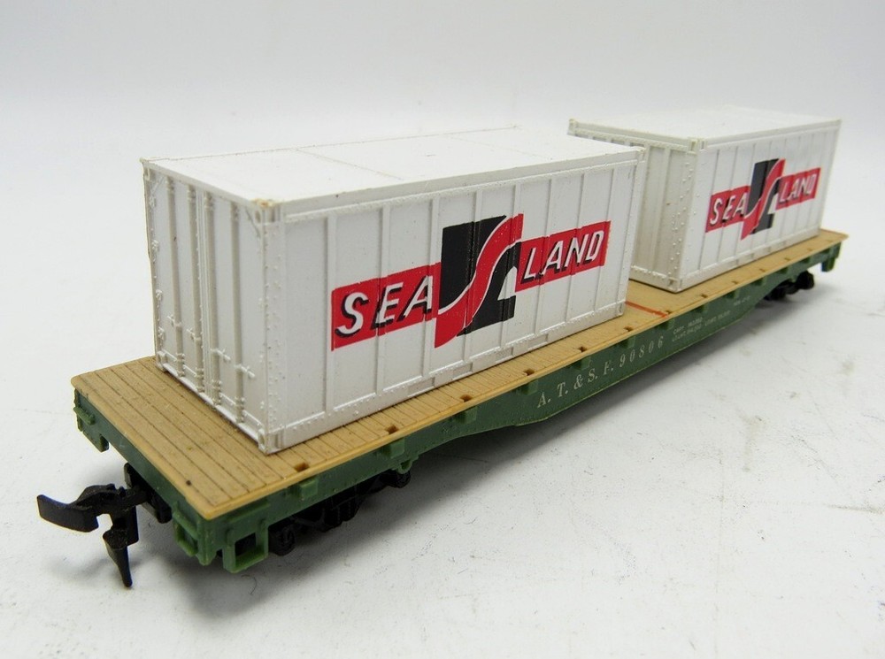HO Scale Santa Fe 50ft Container Car with Detailing & Loaded Containers