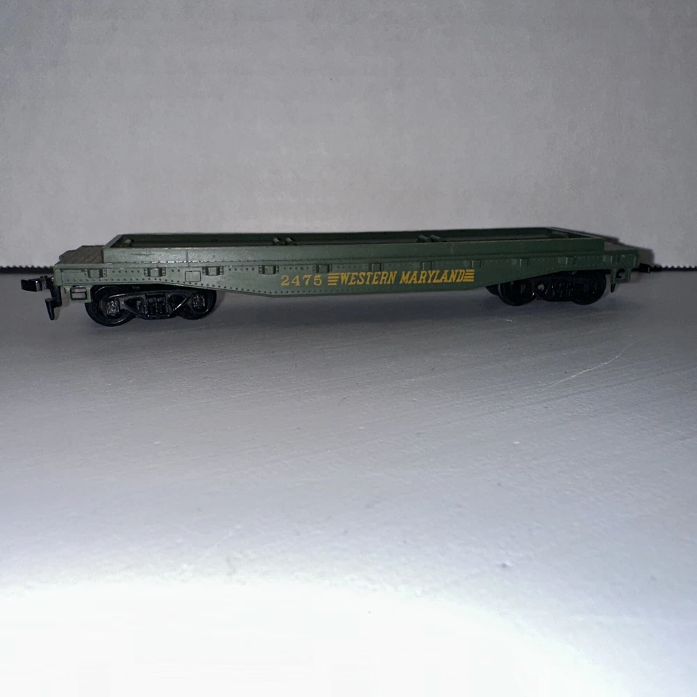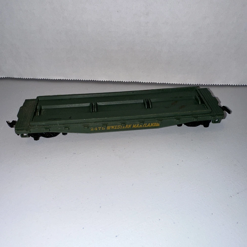 HO Scale, TYCO, 2475 WESTERN MARYLAND, Green, Sectioned, Flat Bed Rail Car. Condition is Used. Shipped with USPS Ground Advantage.