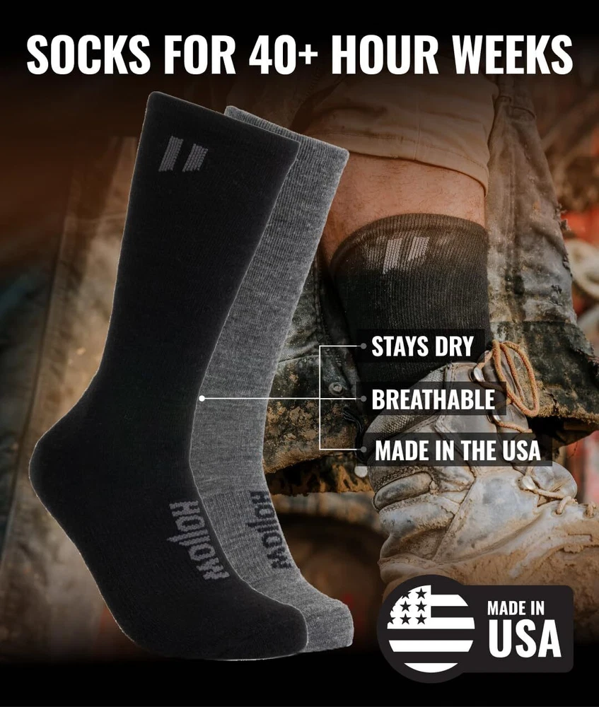 eBay HOLLOW Alpaca Crew Socks for Men and Women, Moisture Wicking Alpaca Socks for Hiking, Running, Outdoors, Any Season Crew Sock, Temperature Regulating, Light Compression, Medium, Grey Description and features SIZE 8-10 CREW SOCKS: Our crew performance alpaca socks are perfect for year round comfort with light compression, a classic crew style sock elevated. Made with 47% Premium Peruvian Baby Alpaca Fiber, 47% Nylon and 6% Spandex. Available in grey and black and a variety of sizes for men and women. FOR EVERY ACTIVITY: Softer and stronger than most other materials typically found in socks, alpaca fiber continues to prove it can withstand a wide range of activities and adventures. Whether you’re looking for hiking socks, hunting socks, running socks, thermal socks, warm socks, winter socks, ski socks, or just a pair of cozy socks for work or relaxing - the benefits of Hollow alpaca socks will keep your feet comfortable. LIGHTWEIGHT & BREATHABLE: Compared to traditional merino wool socks, alpaca fibers have better insulation properties at a lighter weight. The hollow fibers help regulate any temperature, keeping feet warmer or cooler for much longer periods of time. Alpaca fiber is a unique material that can wick moisture, to help keep feet dry and endure long wear. HYPOALLERGENIC & ITCH FREE: Because alpaca fiber is lanolin-free, our alpaca socks for men and women are hypoallergenic and itch-free. The structure of alpaca fibers is not only soft, it also helps provide a cushion against callus buildups, that may help with blisters and foot health. MADE IN THE USA: Our baby alpaca socks are soft, comfortable, and crafted for easy cleaning. Simply wash in cool water and hang to dry. Designed in Wisconsin by outdoor enthusiasts, and made in North Carolina Return Policy ⦿ All our products come with a 30-Day Return Policy. If you would like to return your item and you are within 30 days of the purchase, and it is still in its original condition, you can return the item by contacting us through eBay messaging. ⦿ If you are not 100% satisfied, please let us know the Detailed Problem,We will give you a 100% satisfactory solution ⦿ If you received an incorrect, damaged, defective, or item not as described, contact us for a partial/full refund or replacement on our cost. ⦿ Free Shipping and Free Return 30-Days Money Back Guarantee. ☎ For all returned products, buyers MUST contact us for the returning address. Shipping ⦿ We do not ship to a different address. we will ship to the address you provide on the ebay only. Please check your address before purchase. ⦿ It should take 2-4 business days for the product to reach your destination. ⦿ If the product doesn't reach your destination within the time limit, please give it an additional 1-2 business days in case of postal delays and/or possible technical issues. ⦿ We use a selection of shipping services such as UPS, FedEx, USPS etc. ⦿ We ship only to the 48 contiguous states of America. We do not ship to Hawaii, Alaska, US Protectorates, APO/FPO addresses. Local pickups are not offered. ☎ If it takes any longer than that, please do not hesitate to contact us to resolve the issues. Contact us ☎ Please contact us via eBay message. And your message will be replied within 1 business days. For any queries, please feel free to contact us, we will get back to you as quickly as possible. Customer 100% satisfaction is our first priority and goal. We are always working hard for maintain high standards of excellence and resolve your problem in best way. So your POSITIVE FEEDBACK is very important. If you have any problem of the item, please feel free to let us know before leaving your feedback. We will try our best to solve your problem. About us We are here to give you quality products, competitive pricing and amazing service in order to make sure you get the best deal online, Thank you for your business and the opportunity to serve you.