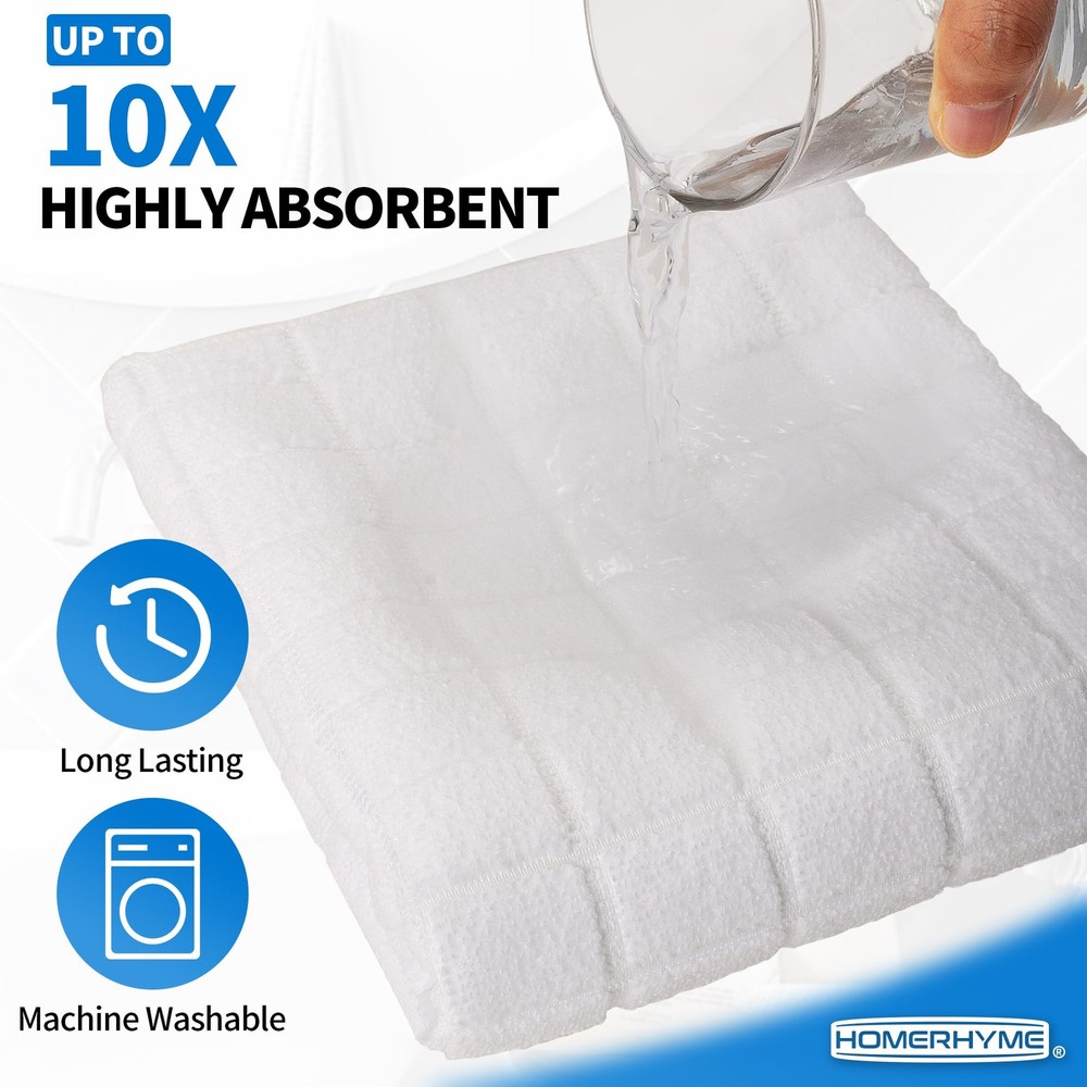 HOMERHYME White Hand Towels, 24 Pack 25*15 Inches Microfiber Bathroom Washcloths Checkered Travel Towels, All-Purpose Quick Dry Lint Free Soft Absorbent Bulk Fingertip Towels for Hotel Guest Gym ULTRA SOFT & SKIN FRIENDLY: High capacity, economical 24 Pack, Size 25" x 15", these white hand towels allow plenty of space to dry off fast and easily and won't leave any lint behind. Each hand towel feels luxuriously soft. Gentle on the skin without causing any discomfort, these hand towels for bathroom are hygienic and effective at drying off while not disrupting your skin's natural moisture barrier. STRONG ABSORBENCY & QUICK DRYING: Made of quality microfiber that offers super absorbency, these bulk washcloths can remove moisture from your hands and dry your face with ease. Able to absorb 10 times their weight while maintaining lightweight and fluffiness, these bathroom hand towels are easy to wash and quick to dry. The breathable microfiber material allows the towel to dry quickly when hung out, preventing unpleasant odors. FUNCTIONAL & DECORATIVE: These practical hand towels can be used as decorative pieces to enhance your home's style. Helpful in the kitchen and ideal for drying hands after rinsing or washing dishes or before and after meals. Lightweight and versatile for use in bathrooms, hotels, gyms, beaches, spas, guest room, and travel and even for use by college students. Giftable and thoughtful presents for holidays, weddings, and housewarming. STURDY & REUSABLE: These microfiber towels are machine washable and long-lasting. The reinforced edges and microfiber fabric provide extreme durability and help prevent towels from wrinkling, unraveling, or shrinking. Firm enough to withstand 500 times Machine Wash Cycle under normal conditions without losing their shape or effectiveness. MULTI-PURPOSE HAND TOWELS: These handy and quick-drying hand towels can serve a variety of purposes besides drying off hands. They can be used as facial towels or washcloths | table napkins | kitchen hand towels | fingertip towels | beach towels | salon towels or spa towels | bath towels | gym towels | sports towels. Or simply keep these white towels in the bathroom as guest towels | hotel towels to elevate the style of the room.