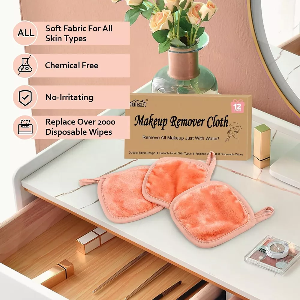 Product Details Package Dimensions : 11.18 x 5.75 x 0.63 inches; 3.53 ounces Manufacturer : HOMEXCEL Brand: HOMEXCEL Skin Type: All Skin,Sensitive Material Feature: Reusable Unit Count: 12 Count Number of Items: 12 Ultra Soft and Hypoallergenic: Our makeup remover cloths are crafted from high-quality 80% polyester and 20% polyamide microfiber material. They are designed to be ultra soft, gentle to the touch, and hypoallergenic. What's more, they are non-irritating and suitable for sensitive skin, making them a great choice for anyone with sensitive skin Natural and Easy to Use: Using our makeup remover towels is a breeze. Simply wet the cloth with warm water or pair it with your favorite cleanser, then gently move it in a circular motion to remove all makeup. No need for cleansing oil or remover wipes, as our cloth effectively removes makeup, leaving your face clean and refreshed. This natural method is healthier for your skin Compact and Easy to Carry: Our 5 " x 5 " reusable makeup remover pads are square-shaped and come in a charming pink color. They are compact and lightweight, making them convenient to carry in your handbag, purse, or travel bag. Use them whenever you need a quick and easy makeup removal solution. They also make perfect birthday or Christmas gifts for friends and loved ones on any occasion Powerful Makeup Removal: Our microfiber face cloth features double-sided functionality. The plush side is ideal for deeper cleansing and exfoliation, while the soft side is perfect for effectively wiping away all types of makeup, including foundation, lipstick, eye shadows, sunscreen, mascara, blusher, concealer, and more. Enjoy powerful makeup removal in a gentle and efficient way Reusable and Washable: With 12 makeup cloths in a pack, you have enough for your daily needs. Once they become dirty, simply place them in a mesh wash bag and toss them in the washing machine. Each makeup remover pad is equivalent to 2000 makeup wipes, saving you money and reducing unnecessary waste from daily disposable makeup remover wipes