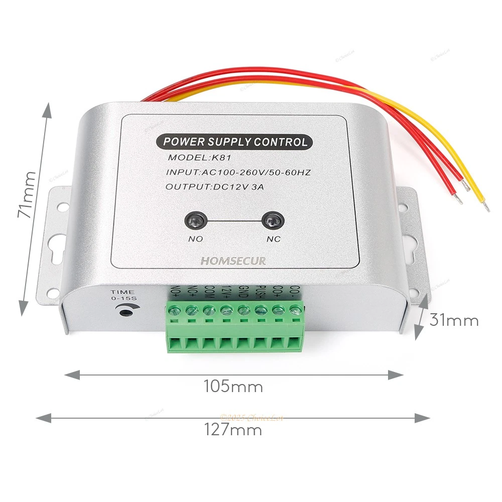 HOMSECUR Weatherproof IP66 APP WIFI Fingerprint PIN Access Control Touch Keypad /11 Descriptions DIY Access Control System with Electric Drop Bolt Lock Waterproof Wifi Fingerprint RFID Access Controller + Power Supply Module + Electric Drop Bolt Lock + 10 RFID Keyfobs + 2 Remote Controls + Exit Button This standalone access control is built for both indoor and outdoor use, protecting the doors and gateways at your business, private properties, or any other area that you wish to guard against intruders. Zinc-Alloy Metal Case And Waterproof Design Door Open Detection Door Open Too Long Detection When using an optional magnetic sensor or built-in magnetic contact of the lock, if the door is opened normally but not closed after 1 minute, the inside buzzer will beep automatically to remind you to close the door. Door Forced Open Detection When using an optional wired door sensor or built-in magnetic contact of the lock, if the door is opened by force, the inside buzzer and external siren (if there is one) will beep. Anti-Tamper Alarm Using an LDR (light-dependent resistor) as an anti-tamper alarm. When the keyboard is removed from the cover, the host will sound a buzzer alarm and at the same time, the Tuya APP will display anti-tamper alarm records. User Information Transfer (Valid for Card/PIN Users) The device supports of transferring user information. The enrolled cards and PINs can be transferred from one (Master Unit) to the other unit (Accept Unit). No repeated registration when adding extra same units. 4 Modes Access: Card, PIN, Fingerprint, Tuya APP 4 modes of access can be set for unlocking access. WG26~44 Input & Output With WG26~44 input & output, it can work with a card reader and also work as a standard wiegand card reader. Backlit Keypad The keypad has backlight but you can always know where to unlock your gate in the night. Management Cards You can set up management cards (delete card and added card) for easy operation. 900 Card/Password User & 100 Fingerprint User It supports 900 Card/Password User & 100 Fingerprint User for storing and reading. Support Different Identity Setting It supports common user, panic user, visitor user setting to meet the usage needs of different scenarios. Unlock Duration Adjustment The door open time can be set within 0-99s (The default unlock duration is 5 seconds.). Manage Easily in Tuya APP The lock connects to Tuya App via Wifi. DIY This access control unit can work with the below accessories to customize security solutions. Do-It-Yourself is available and reliable. This is surface mounting drop bolt lock. When the bolt extends out, the door can be locked normally. It is suitable for wooden door and glass door. Wiring with Access Control Power Supply The wiring diagrams are for reference only. The products are not included, please refer to [what's in] for the package contents. Specifications Waterproof Wifi Fingerprint RFID Access Control Unit Material Zinc Alloy Color Black+Silver Keypad Touch Keypad Entry Access Mode Card, Password, Fingerprint, Tuya APP Fingerprint User 100 Card/Password User 900 Password Format 4-6 digits Card Type EM 125KHz RFID card Reading Distance ≤2.5cm Door Open Time 0-99s (adjustable) Working Voltage DC 12V-18V Working Current ≤ 150mA Idle Current ≤ 60mA Lock Output Load Max. 2A Working Temperature -30°C to 60°C (-22°F to 140°F) Humidity 0-98% rh Ingress Protection Rating IP66 Interface Wiegand 26~44 Input & Output Indicator LED Yes Backlight Yes Net Weight 515g HOMSECUR RFID Keyfobs Material Epoxy coated Frequency 125KHz Reading Range Max 10cm (depend on the card reader) Read/ Write Endurance 100000 time Operating Temperature -40 °C~65 °C Net Weight 80g Power Supply Module with 2 Wireless Remote Controllers Model NO. K81 AC Input AC100-260V 50-60HZ DC Output DC 12V 3A Unlocking Delay 0-15s (adjustable) Wireless Frequency 433MHz EV1527 Battery Model for Remote Controller 27A 12V battery Remote Control Max support 200 remote controllers Net Weight 322g HOMSECUR No Touch IR Exit Button Model NO. Ebutton1 Power Supply DC9V-18V Material Stainless Steel Output Contact NC/NO/COM Infrared Detecting Distance 5-15cm (adjustable) Unlock Duration 3 Modes Selectable 5s/10s/Toggle Ingress Protection Rating IP66 Installation Flush Mount Net Weight 95g Electric Drop Bolt Lock Lock Mode Fail Safe (Magnetic Induction) Voltage DC 12V/24V Current 150mA Signal Output Door Status Output, NC/COM Unlock Duration 0/3s/6s Suitable for Wooden/ Glass/ Aluminum/ Metal Door Surface Temperature Within +20°C Suitable Temperature -10~+55°C (14~131°F) Operating Humidity 0-90% (non-condensing) Structure Stainless Steel Net Weight 435g Content Content Estimated Delivery Time Country/Region Standard (Business Days) Express (Business Days) UK, EU (27 Countries) 6 - 12 4 - 6 Other European Countries 6 - 15 4 - 7 USA, Canada, Mexico 5 - 10 3 - 5 Australia, New Zealand, South Asia, East Asia 7 - 12 3 - 5 South America, Other Countries/ Regions 15 - 25 varying Remarks • Usually, we dispatch your order within ONE to Three WORKING DAYs upon receipt of full payment when stock lasts. • Above estimated delivery time is not guaranteed. However, 95%+ parcels are delivered within the reference time. • For fixed-time delivery or any special needs , please do contact and confirm with us BEFORE placing order. Duties-and-Taxes • Under EU VAT rules, all goods sold to EU are subject to VAT at local rate. • Starting 1 July 2021, eBay will collect VAT on certain orders delivered to EU addresses, on behalf of customers local tax authorities. When you see VAT is included/collected on invoice after cleared payment, you can just wait for the parcel to arrive at your door. Estimated delivery time is 4-12 business days, varies between destination countries and delivery services chosen. • For orders above a certian value, eBay will not collect VAT at checkout, buyers are required to declare and pay tax at point of import. To facilitate smooth customs cl