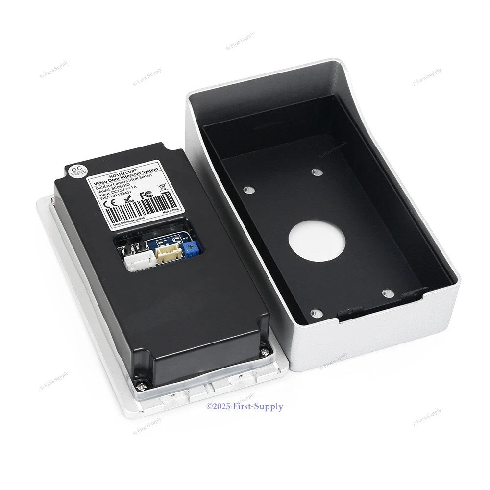 Frist-Supply World Shipping Money Back Guarantee HOMSECUR Password Access BC081HD Camera For Video Door Entry Phone Call System /7 Descriptions HOMSECUR ® Camera with Password & RFID Access BC081HD CMOS camera with 1.3MP for the quality view 110° wide angle for large view Outside ringtone and intercom volume adjustable Door release with NO/NC Dry Contact IR LEDs offset lighting for clear night-vision Illuminated call button for easy operation at night Ingress Protection Rating of IP65 for outside installation Anti-tamper Function adds on safety 200 RFID cards and 200 groups of the password to unlock the door Work as an access controller to unlock the door via password, ID card, password with ID card. Installation Surface mount Compatible Monitors These cameras can ONLY work with the below HOMSECUR ® (HDK Series) monitors. Specifications Outdoor Camera Model NO. BC081HD Color Black+Silver Function Call Button, Password, ID Card Anti-Tamper Function Yes Sensor 1/3" CMOS Horizontal Resolution 1.3MP Lens 2.8mm Min. lllumination 0.1Lux View Angle 110° Night Backlight IR LED, up to 1.5m Night Vision Image Black & White Ingress Protection Rating IP65 Adapter Output DC12V/1A Net Weight 390g Material Aluminum Case & Acrylic Panel Working Temperature -40°C~+50°C Installation Surface mount Reading Capacity 200pcs RFID Cards Reading Distance within 3-5cm Card Type 125KHz RFID card Content Services Estimated Delivery Time Country/Region Standard (Business Days) Express (Business Days) UK, EU (27 Countries) 6 - 12 4 - 6 Other European Countries 6 - 15 4 - 7 USA, Canada, Mexico 5 - 10 3 - 5 Australia, New Zealand, South Asia, East Asia 7 - 12 3 - 5 South America, Other Countries/ Regions 15 - 25 varying Remarks • Usually, we dispatch your order within ONE to Three WORKING DAYs upon receipt of full payment when stock lasts. • Above estimated delivery time is not guaranteed. However, 95%+ parcels are delivered within the reference time. • For fixed-time delivery or any special needs , please do contact and confirm with us BEFORE placing order. Duties-and-Taxes • Under EU VAT rules, all goods sold to EU are subject to VAT at local rate. • Starting 1 July 2021, eBay will collect VAT on certain orders delivered to EU addresses, on behalf of customers local tax authorities. When you see VAT is included/collected on invoice after cleared payment, you can just wait for the parcel to arrive at your door. Estimated delivery time is 4-12 business days, varies between destination countries and delivery services chosen. • For orders above a certian value, eBay will not collect VAT at checkout, buyers are required to declare and pay tax at point of import. To facilitate smooth customs clearance, we work with world's leading international couriers (i.e. FedEx, DHL) to ship your parcel via commercial grade express delivery service. The courier will properly handle customs duty and tax declaration when importing the parcel. You don't need to contact or visit customs/tax office in person. All you need to do is to pay your tax fees on delivery. Parcels will be delivered within 4-6 business days to most EU addresses under such arrangement. Satisfaction Guaranteed 30 Days Money Back Guarantee If you are not satisfied with the item purchased from us. Please contact us in writing (e.g. e-mail, eBay message) within 30 days of receipt of goods for return & refund guidance. Free Replacement If you receive a not-as-described (e.g. defective, incorrect, part missing) item, please contact us upon receipt of the item. We will arrange a replacement as soon as the case is confirmed. 12 Months Supplier Warranty We provide ONE YEAR warranty on this product from date of purchase. If your item has any warranty issues, please contact us for a satisfying solution. Requirements • All qualified return/replacement must be guided by us. We may not accept your return without communication in advance. • Any customs fee, handling charges, postage and insurance incurred in return/replacement are on customer's cost. Agreement : By placing an order, you acknowledge that you have accepted the terms and conditions of sale. You are welcome to contact us with any questions. Image Gallery Descriptions Specifications What's In Terms & Condition