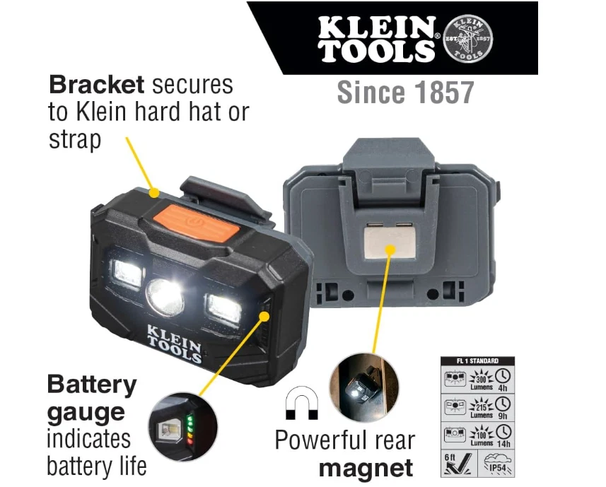 HOT NEW Klein Tools 80174 Rechargeable LED Headlamps, 2-Pack RECHARGEABLE LED HEADLAMP: Battery gauge indicates level of battery life with colored LED lights (Cat. No. 56062) EASY ATTACHMENT: Designed to mount headlamp onto convenient Klein Bracketed Straps (Cat. No. 56060) and Klein Hard Hats equipped with bracket systems STRONG MAGNET: Mount headlamp magnetically with strong integrated magnet for use as a hands-free work light BRIGHT ALL DAY USE: 3 modes: Boost/All-On 300 lumens for 4 hours, 215 lumen Spotlight for 9 hours, and 100 lumen Floodlight for 14 hours COMFORTABLE: Strap comes with silicone grip to keep strap secure for comfortable all day wear When you receive your order and have any queries or concerns about the product, feel free to message us. We guarantee 100% resolution for you. Our commitment is to provide high-quality products and exceptional customer service, ensuring your trust and satisfaction.