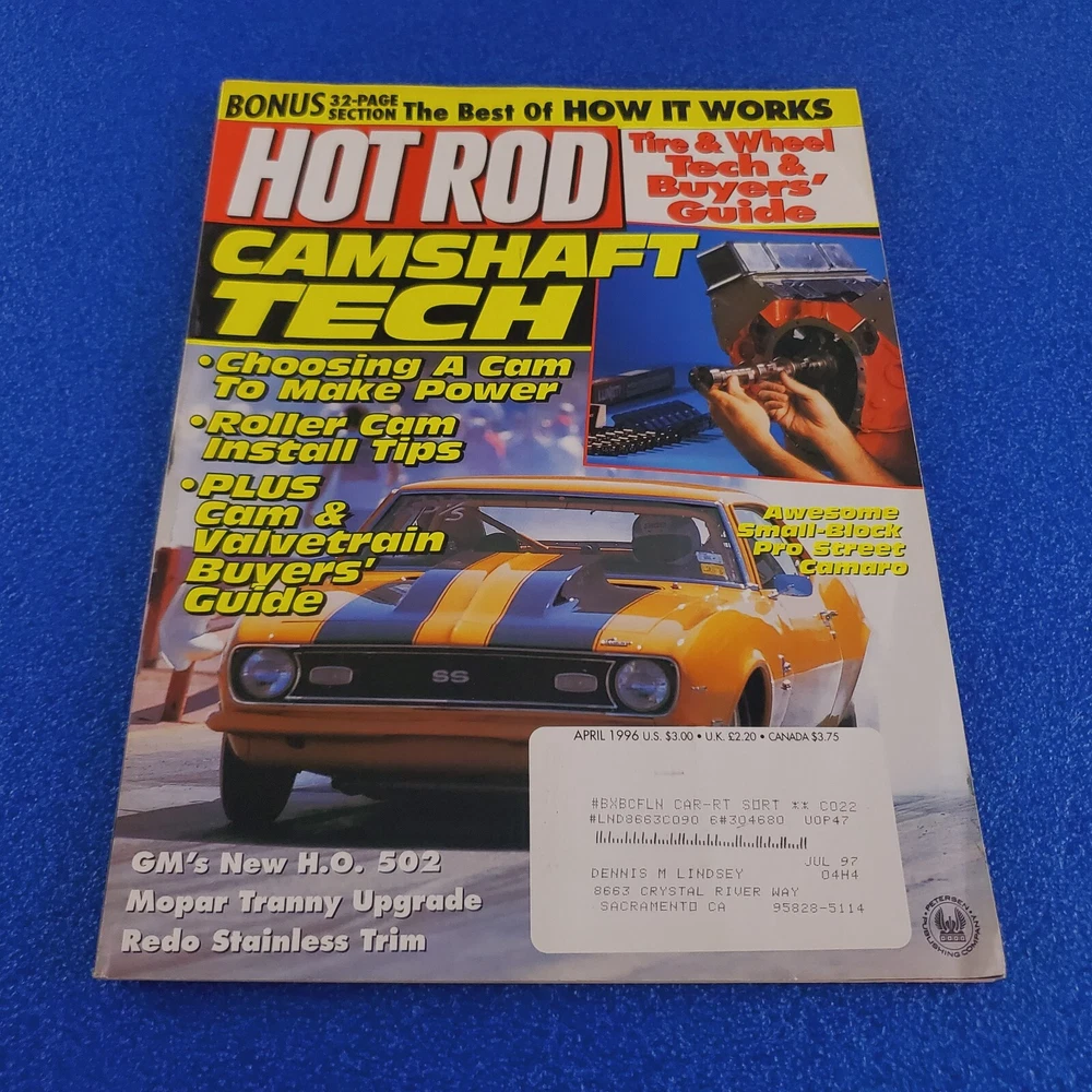 - HOT ROD: CAMSHAFT TECH CHOOSING A CAM TO MAKE POWER APRIL 1996 - GOOD CONDITION - PLEASE READ ITEM CONDITION ABOVE FOR MORE DETAILS - SHIPPING IS FREE - APPROX SIZE 8in X 11in