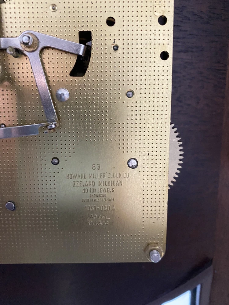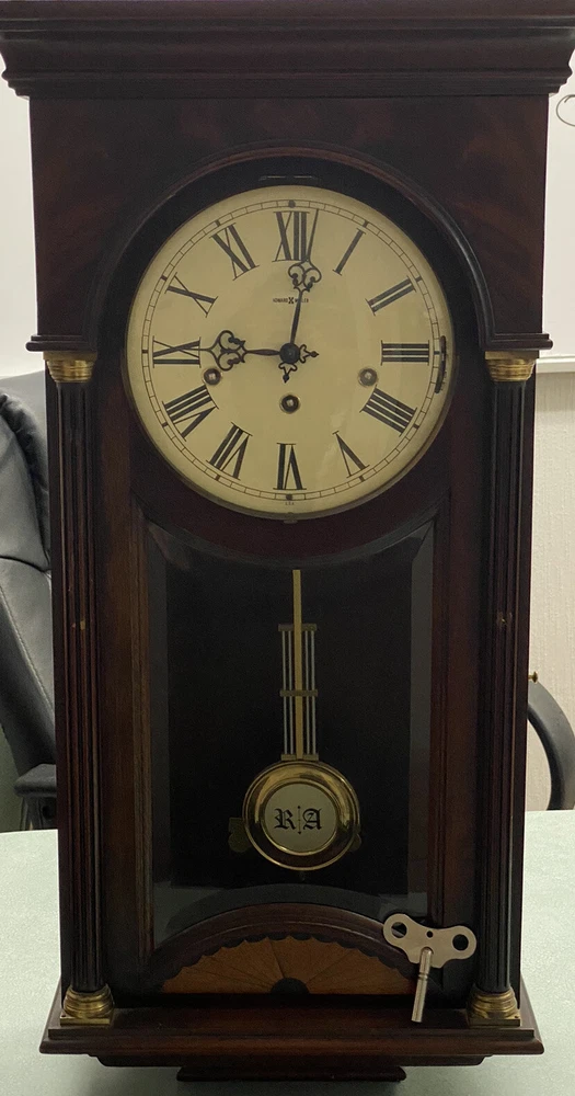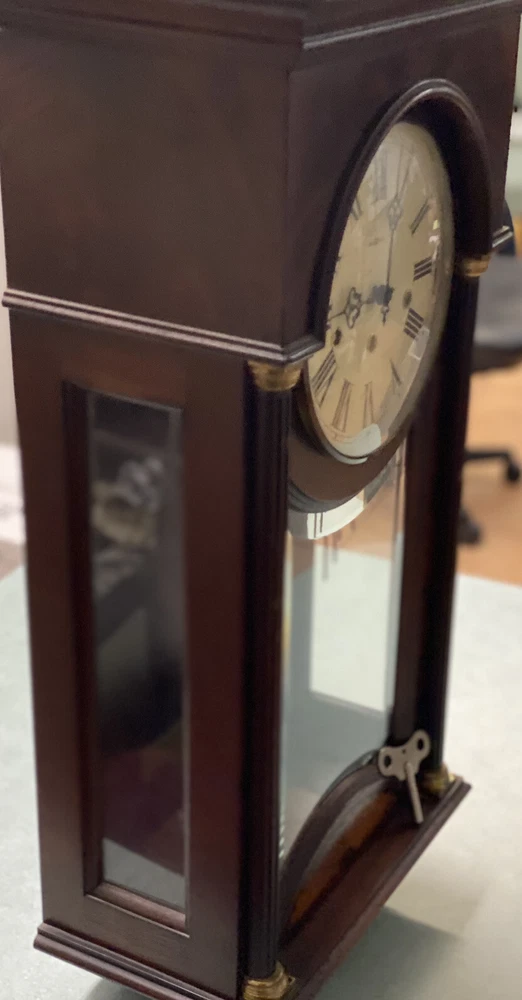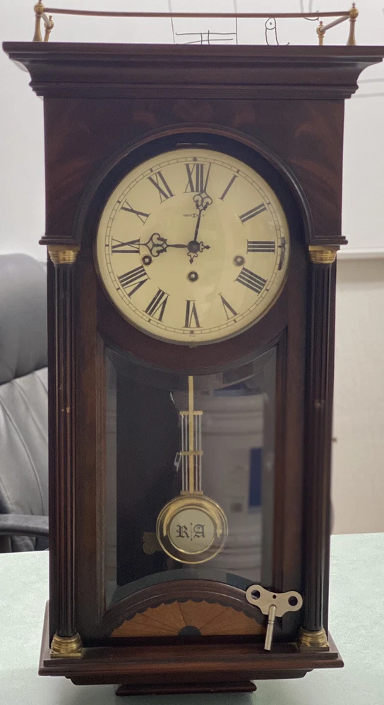HOWARD MILLER TRIPLE CHIME WALL CLOCK MODEL 612-218 INLAY TOP OF LINE BURLWOOD. Shipped with USPS Priority Mail.