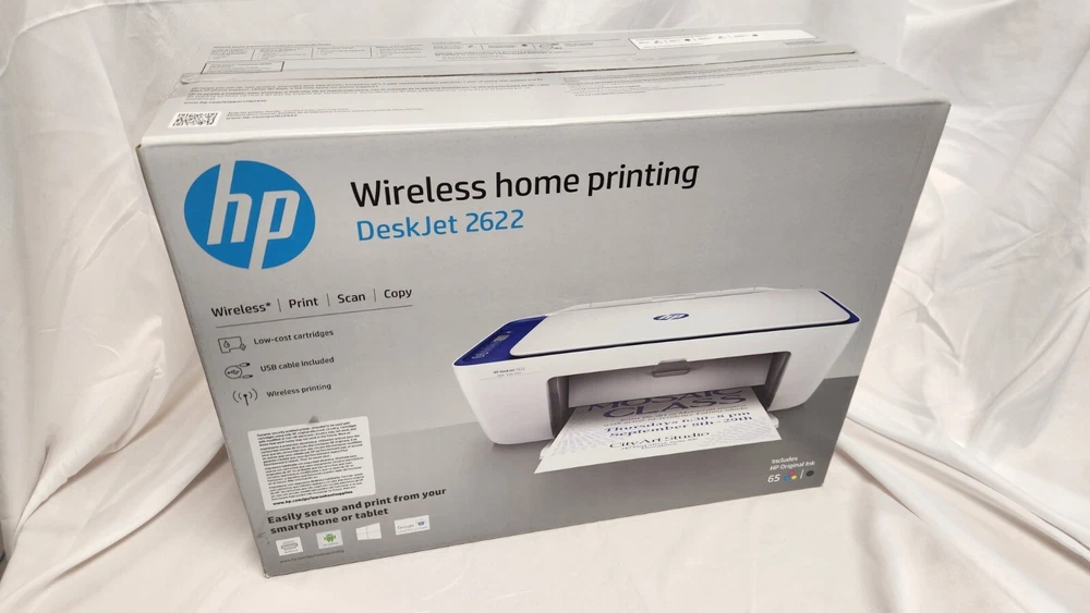 Experience the convenience of the HP Deskjet 2622 All-In-One Wireless Printer, a versatile device that simplifies your home or office tasks with its multifunction capabilities. This printer is designed to deliver high-quality color prints, scans, and copies with reliability and ease. With its robust wireless connectivity, it lets you print from various devices without the hassle of cables. The HP DeskJet 2622 is part of the renowned HP DeskJet product line, known for its user-friendly features and cost-effective operation. Whether you need to print documents or create colorful images, this printer's inkjet technology ensures you get consistent results every time. This device is brand new, in the box, unopened. All purchases benefit De Pere Christian Outreach Thrift Store, De Pere, Wisconsin.