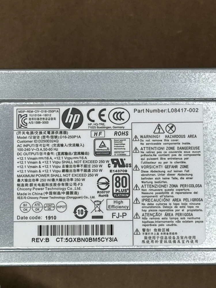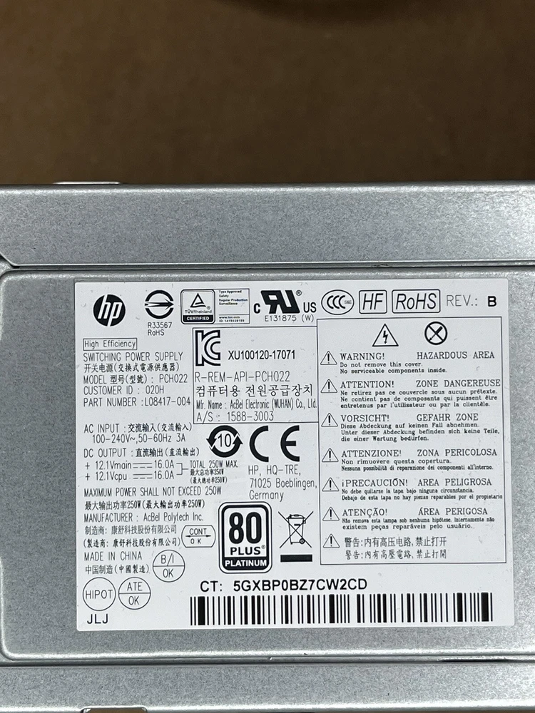 Power supply is in good working condition and was pulled from a working computer. You will receive either a 002 or 004 version of the power supply. Both are identical and use the same exact wires and pins and both came out of the same exact computers. Can be used in Elitedesk 800 G4 and G5 computers.