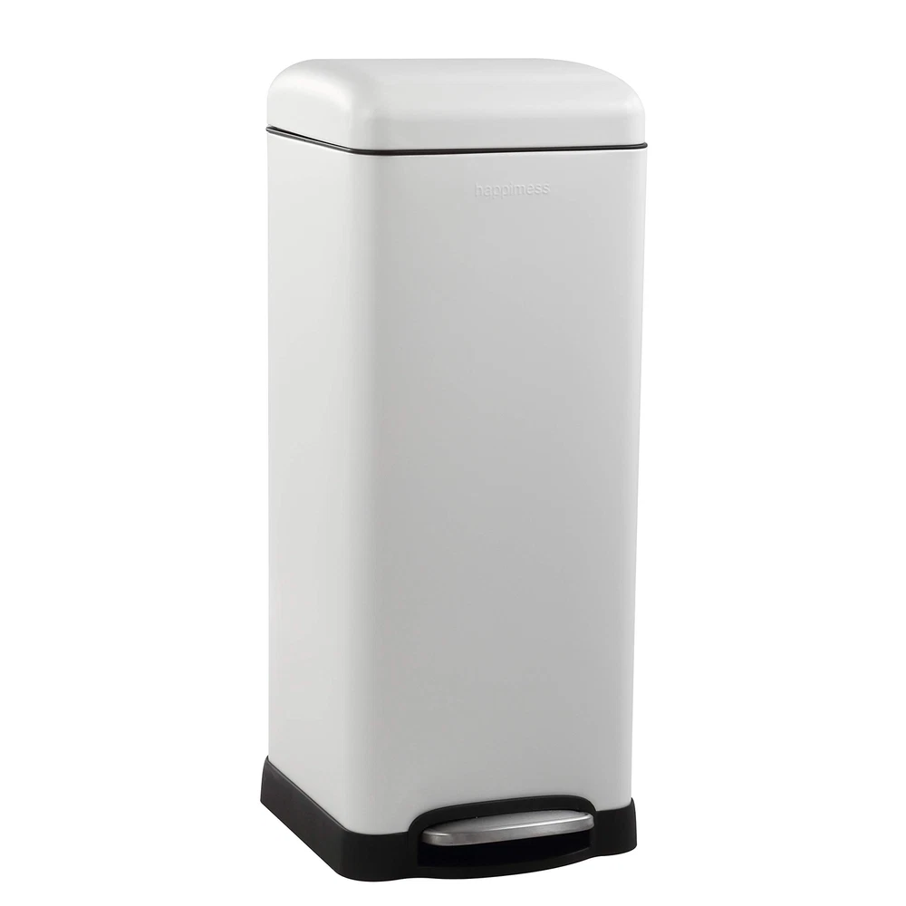 This semi-rectangular 8-gallon trash can hides plenty of capacity within its slim size, making it a great choice for home offices, craft rooms, laundry rooms and other small spaces. Featuring a profile hinge and retro silhouette -- its sleek design allows it to sit close to a wall or cabinet. Its design features don't end there -- its finished in powder-coated stainless steel, features a steel step-on mechanism that allows for smooth openings and closings (no pinched fingers!), and has a removable plastic liner that makes bag changes a cinch. STYLISH & PRACTICAL DESIGN: Trash Cans clean-lined designs blend beautifully into your existing decor; Dispose of trash hands-free with our convenient step pedal; built-in damper lowers the lid quietly, and closes it tightly to keep odors inside DURABLE AND EASY-CLEAN: We believe in form following function; Made from high-quality steel, our trash cans feature a durable, lightweight inner plastic bucket; Family-friendly, brushed stainless steel is smudge-resistant and fingerprint proof SATISFACTION GUARANTEED: Every design is created with uncompromising attention to detail, using only the highest quality components; Based in Soho, New York, designer Jonathan and his talented team create affordable high-end home decor Can hold 30 liters or 8 gallons of trash Powder-coated steel construction