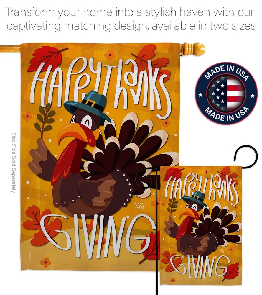 Thanksgiving Beautiful Large House Flag, Wooden Flagpole And Bracket – Wall Mount Complete Set Gold Eagle Aluminum 6' Flagpole with Metal Holder have variety of House Flag Set for all occasions. Uniquely design for hanging indoor or outdoor use. We are committed to offering you exceptional values. Our customers enjoy displaying our House Flag Set for longer periods. Specification: Theme: Thanksgiving Size: House Flag Set 28" x 40" Size: Decorative Flagpole With Adjustable Angle Flag Bracket Print: Double-Sided Readable: Readable Both Sides Material: Weather Resistant 3 Layers Block out Stitching: Double Stitched Display: Vertical Hang Type: Sleeve Artist: Molly Will Special Features: Origin: Printed In USA Package Include: 1 pc x Large House Flag 28" x 40" 1 pc x Decorative Flag Pole 1 pc x Adjustable Angle Wall Mount Flag Bracket For more than a decade, we’ve been dedicated to manufacturing flags with no comparison in quality and beautiful designs. Our flags are made with our Guard material that is soft to the touch and designs can be read correctly on the flag. A feature that our customers will love. We are committed to using inks that won’t leave a foot print in our environment. MPN: OC-TG-HS-192043-IP-BO-02-D-US17-OC 92043 92043 PROUDLY Printed In USA - Package And Product Designed In California PURCHASE WITH CONFIDENCE - From 's US Authorized Resellers MADE OF DURABLE - Thick Polyester Fabric construction helps resist the wear and tear from frequent use TEXT READABLE BOTH SIDES - House Flag Set Double-Sided Print DURABLE FLAG - Double stitching panels on multiple rows and high quality Sleeve to provide lasting strength