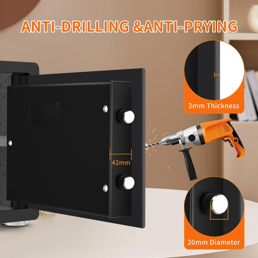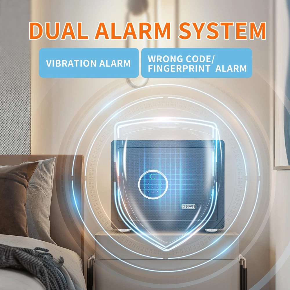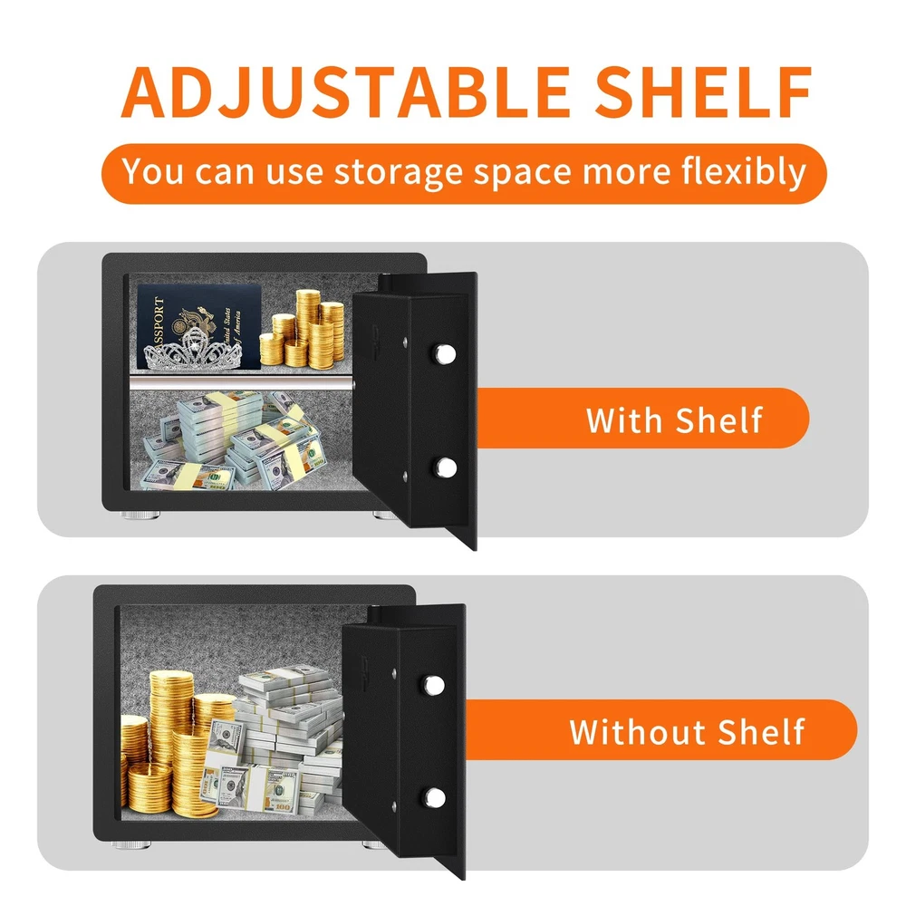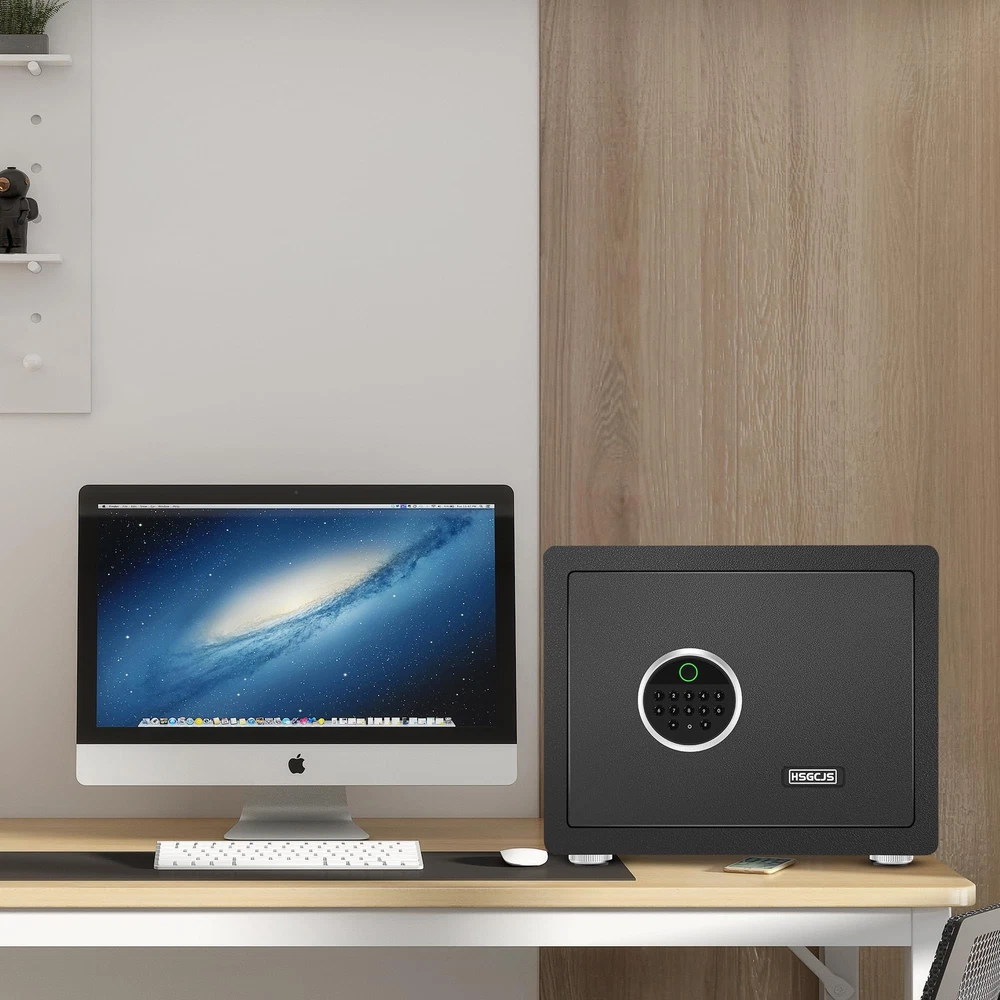 HSGCJS Biometric Fingerprint Safe, Home Safe Box with full Digital Keypad,Security Safe For Home,Office and Hotel-1.2 Cubic Feet [NEW SAFE EXPERIENCE] HSGCJS biometric fingerprint safe has a storage space of 1.2 cubic feet and an adjustable shelf to provide you with more flexible storage space. The home safe is equipped with LED lights inside, allowing you to quickly find what you need in the dark. In addition, the interior of the fingerprint safe is covered with velvet to prevent valuables from being scratched or damaged. 【STURDY STEEL STRUCTURE】The fingerprint safe adopts a micro-slit design with laser cutting precision without any deformation points, which enhances the anti-pry performance. The safe is made from high-quality solid alloy steel with excellent drill and high temperature resistance. The safe is equipped with 2 strong latches and a 3mm thick door panel to better protect our property and privacy. 【UPGRADED ALARM SYSTEM】As a multifunctional security safe for home, office and hotel use, we have been focusing on versatility and continuous new upgrades, so it is equipped with a dual alarm function for three consecutive wrong passwords or five wrong passwords. Fingerprints will trigger an alarm for 20 seconds. Press the * key to turn on the alarm function. Severe vibration will also trigger the alarm function. 【3 WAYS TO OPEN】HSGCJS security safe is equipped with an advanced one-touch biometric system that can store up to 28 fingerprints and unlock within 0.1 seconds, allowing you to open the safe quickly and accurately. You can also easily unlock your home safe using a numeric code. In case of emergency or if you forget the password, you can also use 2 emergency keys to open the safe. 【EASY INSTALLATION & CUSTOMER SERVICE】The home safe comes with pre-drilled holes for easy installation on the floor, shelf or wall. Prevents unauthorized movement and keeps your safe securely in place. If you have any questions or difficulties, please contact us and we will be happy to help you. We provide high standards of 24/7 customer service. Tips: Product Features 1.Heavy-duty and solid steel construction of safe ensures security 2. 3-8 digit code unlock function 3. Advanced fingerprint unlocking, up to28 fingerprints can be stored 4. Double alarm function. 3 times wrong password / 5 times wrong fingerprint input / violent vibration, will make the safe alarm for 20 seconds 5. The interior is wrapped with a soft lining that effectively prevents valuables from being scratched. 6.Shelf can be removed to enlarge inner storage space 7.Two emergency override keys also can be used to open the safe 8.Pre-drilled holes for mounting to the floor, shelf or wall to improve security Specification Color: Black Material: Steel Exterior Dimensions: 14.96x 11.8x 11.8 inch (L x D x H) Interior Dimensions: 14.56 x 11.42 x 11.42 inch (L x Dx H) Net Weight: 12KG/26.5 pounds Package Weight:13 kg/28.7pounds Package Includes: 1*Safe Box> 2*Keys> 4*Mounting Screws> 1*User Manual> 1*External Battery Compartment> 4*Foot Pats> DO NOT leave the key in the safe anytime! Shipping We offer FREE shipping on all orders! We ship within Three business days of payment, usually sooner. We use a selection of shipping services such as UPS, FedEx, USPS etc. We only ship to the lower 48 states, no APO/FPO addresses or PO Boxes allowed. Local pickups and combined shipping options are not provided at this time. Return You can return a product for up to 30 days from the date you purchased it. Any product you return must be in the same condition you received it and in the original packaging. Please keep the receipt. Payment We accept payment by any of the following methods: PayPal Please pay as soon as possible after winning an auction, as that will allow us to post your item to you sooner! Feedback Customer satisfaction is very important to us. If you have any problem with your order, please contact us and we will do our best to make you satisfied. Contact Us If you have any queries, please contact us via ebay. We usually respond within 24 hours on weekdays. Please visit our eBay store to check out other items for sale! Thank you for shopping at our store.