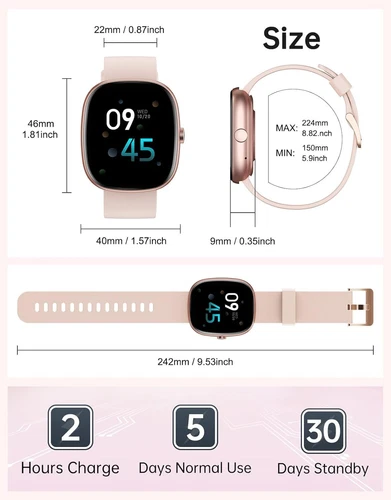 HUAKUA Smart Watches for Women Men (Answer/Make Calls), 1,85" HD Smart Watch for iPhone/Android Phones, Fitness Tracker with 100+ Sport Heart Rate/Sleep Monitor Pedometer IP68 Waterproof (Pink) LuxeFusion Product Description Features Stylish Smart Watches for Women Men: HUAKUA D3 smart watch adopts a 1.85-inch HD full-touch curved screen, which delivers an exceptional image quality and touch sensitivity. You can easily set the watch face by choosing from the app with over 200 personalized dials or from your favorite photos to match your style. Make/Answer Calls Smart Watch: By connecting the watch to your smartphones (compatible with iOS 9.0/Android 5.0 or above smartphones) via Bluetooth and the app, you are able to answer or make calls just on this smart watch, allowing you to stay connected with family and friends anytime. Message Notifications: You can receive real-time notifications directly on D3 smartwatch, such as incoming text or social media messages. It keeps you informed and never miss anything important. (Note: You can read but can’t reply messages with the watch) Fitness Tracker Watch: With 100+ sports modes, this watch can meet a variety of exercise needs. It automatically tracks your steps, calories burned, distance covered, and provides accurate real-time exercise data, helping you better understand your fitness progress. Heart Rate Monitor & Sleep Tracker: Equipped with advanced sensors, this smart watch monitors your heart rate, blood oxygen levels and sleep quality, providing valuable insights into your health. By continuously recording and analyzing data, empowering you to make lifestyle adjustments for a healthier life. Long-Battery Life & IP68 Waterproof: With 2 hours of charging time, this fitness watch can last 5 days with frequent use or 30 days when standby. Its IP68 waterproof design allows you to wear it with no worries while doing activities or washing your hands. More Practical Features: This smartwatch offers a variety of practical tools, including music control, alarm clock, stopwatch, calculator, find phone, weather forecast, female cycle tracking and so on. Product Details Product Dimensions: 9.65 x 1.38 x 0.43 inches Item Weight: 3.2 ounces Item model number: D3 Batteries: 1 A batteries required. (included) Manufacturer: HUAKUA Language: Spanish Country of Origin: China Standing screen display size: 1.85 Inches Memory Storage Capacity: 128 MB Operating System: compatible with iPhone and android phones Special Feature: Heart Rate Monitor, Sleep Monitor, Blood Oxygen Monitor, Bluetooth Phone Call, Message Notification, Customizable Watch Faces, Alarm Clock, Time Display, Touchscreen, Weather Forecast, Steps Tracker, Calorie Tracker, Distance Tracker, Pedometer, Activity Tracker, Multisport Tracker Heart Rate Monitor, Sleep Monitor, Blood Oxygen Monitor, Bluetooth Phone Call, Message Notification, Customizable Watch Faces, Alarm Clock, Time Display, Touchscreen, Weather Forecast, Steps Tracker, Calorie Tracker, Distance Tracker, Pedometer, Activity Tracker, Multisport TrackerHeart Rate Monitor, Sleep Monitor, Blood Oxygen Monitor, Bluetooth Phone Call, Message Notification, Customizable Watch Faces, Alarm Clock, Time Display, Touchscreen, Weather Forecast, Steps Tracker, Calorie Tracker, Distance Tracker, Pedometer, Activity Tracker, Multisport Tracker See more Connectivity Technology: Bluetooth Wireless Communication Standard: Bluetooth Battery Cell Composition: Lithium Polymer GPS: No GPS Shape: Square Screen Size: 1.85 Inches Brand: HUAKUA 🚚 Free Shipping All orders ship free and fast to your doorstep. 🔁 Easy Returns Satisfaction guaranteed. 30-day returns, no questions asked. 💬 24/7 Support Contact us anytime; we’re here to help, day or night. Brought to you by LuxeFusion – Quality you can trust.