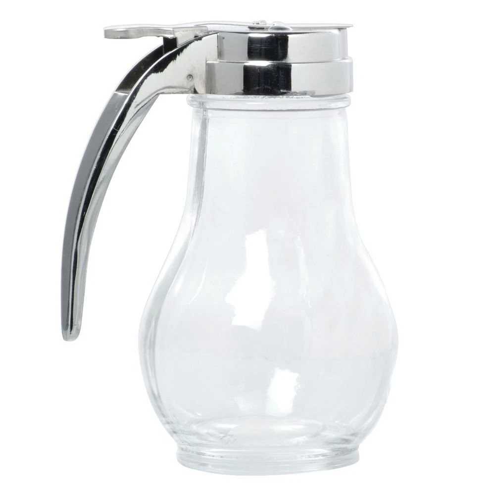 Our eBay Store Contact Us Add to Favorite Sellers HUBERT® Syrup Dispenser with Chrome Plated Top Glass 14 Ounce Does your establishment have large quantities of syrup but nothing to serve it with? We have just the product for you. The Hubert® 14 oz Clear Glass Syrup Dispenser With Chrome-Plated Top is the perfect piece of equipment for you to serve sweet, tasty syrup to your hungry customers. This syrup dispenser is made of a high-quality glass which will give your business an air of class and sophistication. As we know, a neat and orderly establishment is vital to any food business. So, the lid of this syrup dispenser can be screwed on very tight to prevent unnecessary spillage and mess. Syrup dispensers are standard items for any food establishment that serves breakfast foods, and the Hubert® 14 oz Clear Glass Syrup Dispenser With Chrome-Plated Top is a must-have for your business. The chrome-plated top is durable and built to last. This dispenser is designed to allow its contents to be dispensed easily. Easy pour lid decreases spills High quality durability that is made to last Standard item for any restaurant setting Customer Satisfaction Guaranteed!