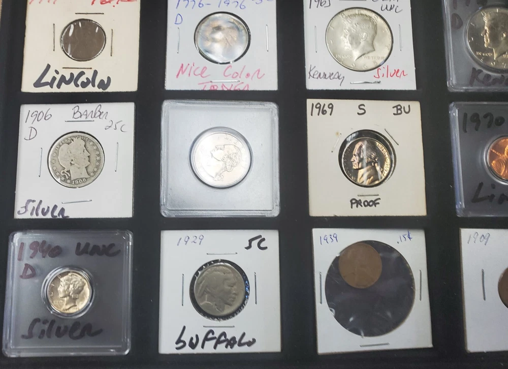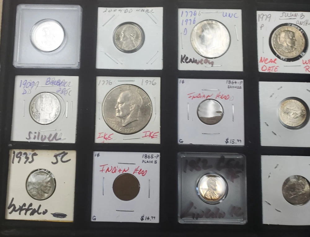HUGE Estate Sale Coin Lot Collection - Great way to add and Nice Variety of USA, Old Rare Coins, Old Paper Money, 1957-B $1 Silver Certificate Bank Note, Lot's f Silver Coins, Terror of The Axis Coin Collection in Picture Frame, US. Mint Proof Sets, Commemorative, Medals, Lincoln BU Cents Roll, Lincoln Wheat Cent Roll, Kennedy Half Dollar Roll, Buffalo Nickel, Indian Head Cents, Silver Barber Quarters, Partial Lincoln Cent Collection in Album, Kennedy Silver Half Dollar Coins, 1994 Kennedy Silver Premier Half Dollar Set, Susan B. Anthony Dollar, & Much More to any Collection. Please Note: The Two Black 12-Coin Flip Tray's Are Not Included, it's to display the coins in the lot only. Very Clean Lot from a Smoke Free Environment. !! HAPPY BIDDING !! (SKU # 70 2-B) *** INTERNATIONAL SHIPPING QUOTED*** Thank you for viewing... Please email any questions you may have.... Take a moment and check out our other unique auctions !!! ***** Email us about signing up for our mailing list******* Exciting new items every day Philately - The Quiet Excitement Shipping We try to Ship Within 5 Business Days of Cleared Payment Will calculate international shipping PLEASE READ International Buyer's Shipping Instructions International shipping "" First Class Registered ENVELOPE " NO EXCEPTIONS ! ** Insurance, Registered mail or Confirmation/Signature Guarantee is included in the price of shipping for the USA only ** Our goal is to please our customers, provide quality and unique items, have successful transactions and earn positive feedback with a 5 star rating. We strive for accurate descriptions, quick turnaround, detailed communication, and reasonable shipping charges on every lot. Your feedback is important to us. If you feel anything about the transaction was less than 5 star, please give us the opportunity to rectify the situation Thank you The Staff at Henry Gitner Philatelists, Inc.