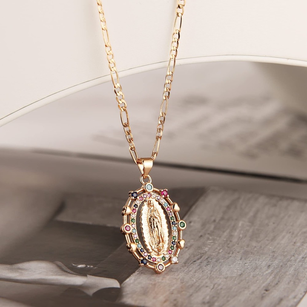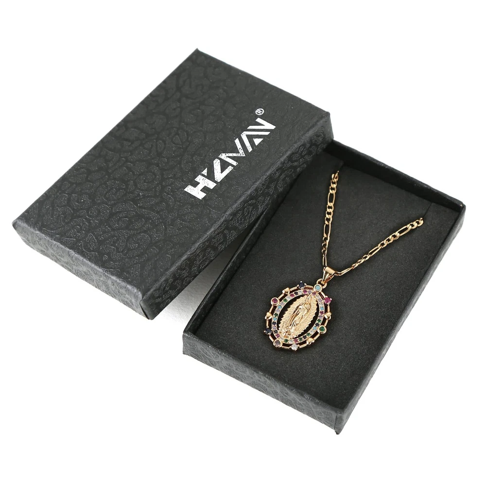 HZMAN 14K Gold Plated Oval Cutout Heart Virgin Mary Prayer Necklace Amulet Our Lady of Guadalupe Pendant Multicolor Cubic Zirconia Women Daughter Gift (Gold) Mother of God's Sacrament Medal. pendant. The perfect unique spiritual gift! Even better than photos! It comes with a 17-inch gold-plated chain Maria: The Virgin Mary is the biological mother of Jesus and a Christian figure. In Catholicism, there is a very important prayer ceremony, called the prayer of the Rosary, which is achieved by meditating on fifteen major events in the life of the Virgin Mary. Purpose of self-purification; Our Lady of Guadalupe (Spanish: Nuestra Señora de Guadalupe), also known as Our Lady of Guadalupe (Spanish: Virgen de Guadalupe), is the Catholic title of the Virgin Mary. IDEAL GIFT AND EXQUISITE PACKAGING: Great gift for yourself, lover, friend, family (father, mom, brother, sister) or others on birthday, christmas, date, holiday, graduation, wedding, mother's day / Father's Day, Engagement, Valentine's Day and any special day for you. Material: We chose to make it from high-grade brass material because of its strong rust, corrosion, and rust resistance properties. Durable and stylish. This all makes it a top fashion accessory. And its high-cost performance gives our consumers more choice Packaging and after-sales: Comes with a beautiful box printed with "HZMAN", which is very suitable for gift giving. If you are satisfied with it, don't forget to share it, if you are not satisfied, please feel free to contact us, and we will solve any problem for you HZMAN Jewelry HZMAN Jewelry is a manufacturer and trader specializing in jewelry research, development, and production. HZMAN's Sterling Copper Virgin Mary Pendant Necklace with Diamonds A symbolic charm traditionally used to bless families wherever they go. Our project: We made it with pure copper because it has strong anti-rust, anti-corrosion, and anti-rust abilities. Durable and stylish. This all makes it a top fashion accessory. And its high-cost performance allows our consumers to have more choices. Ideal gift and nice packaging: Birthday, Christmas, date, holiday, graduation, wedding, Mother's Day for yourself, lover, friend, family (father, mom, brother, sister), or others Great gift/father's day, engagement, valentine's day and any special day for you. Shipping We offer FREE shipping on all orders! We ship within Three business days of payment, usually sooner. We use a selection of shipping services such as UPS, FedEx, USPS etc. We only ship to the lower 48 states, no APO/FPO addresses or PO Boxes allowed. Local pickups and combined shipping options are not provided at this time. Return You can return a product for up to 30 days from the date you purchased it. Any product you return must be in the same condition you received it and in the original packaging. Please keep the receipt. Feedback Customer satisfaction is very important to us. If you have any problem with your order, please contact us and we will do our best to make you satisfied. Contact Us If you have any queries, please contact us via ebay. We usually respond within 24 hours on weekdays. Please visit our eBay store to check out other items for sale! Thank you for shopping at our store.