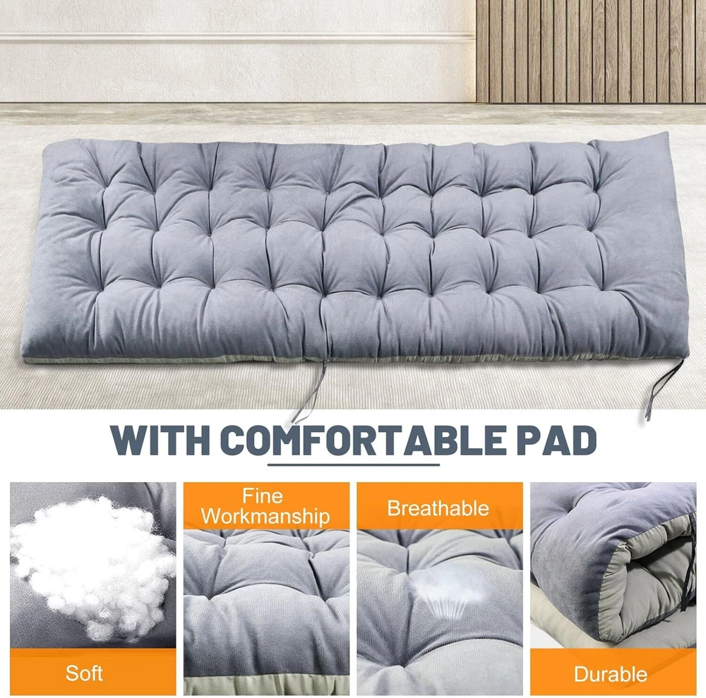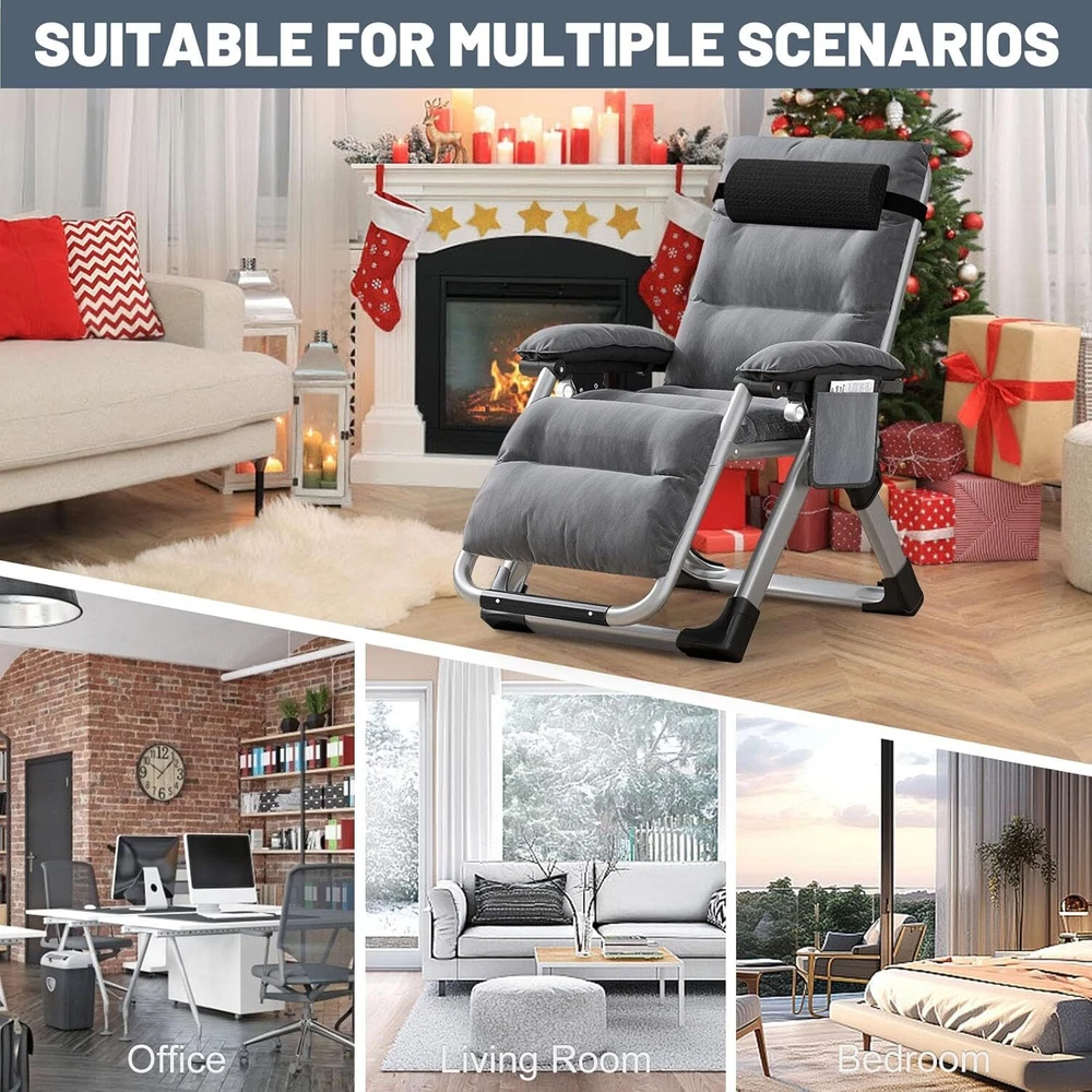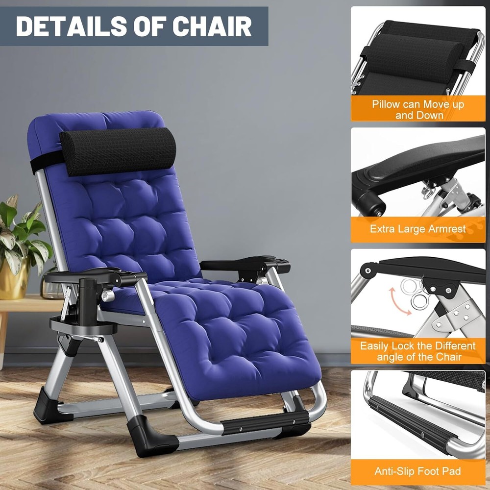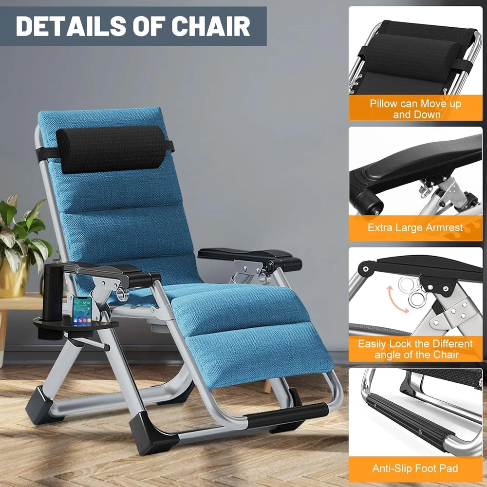 【 COMFY BEDROOM CHAIR 】 Whether you're reading your favorite novel, watching a TV show, or even doing homework, this cozy chair is all you need to make everything more relaxed and comfortable. Holds Up To 440 Pounds. 【 HEAVY DUTY 】The folding chair is built with premium quality materials, which provide increased durability and resistance. The steel pipe of the living room chair is thickened, so that the chair does not shake or collapse, and the bearing capacity is greater and safer. Upgrading the fabric to make you feel more comfortable; 【 MULTIPURPOSE USE 】Whether you want to relax by reading a book or take a quick break, this comfortable chair is the ideal solution. It can be used for indoor relaxation and outdoor activities, such as family gatherings, barbecues or beach days, or in the office; 【 EASY to USE 】This folding chair can be folded and unfolded in seconds. The lounge chairs are easy to transport and store, and you can easily carry them by car. Suitable for living room, terraces, lawns, gardens, yards, balconies, poolsides and beaches; 【 ONE-YEAR WARRANTY 】We provides all customers with a one-year warranty for the purchase of our chairs. Regardless of the reasons for dissatisfaction with our products, we will provide you with good solutions and the best service.