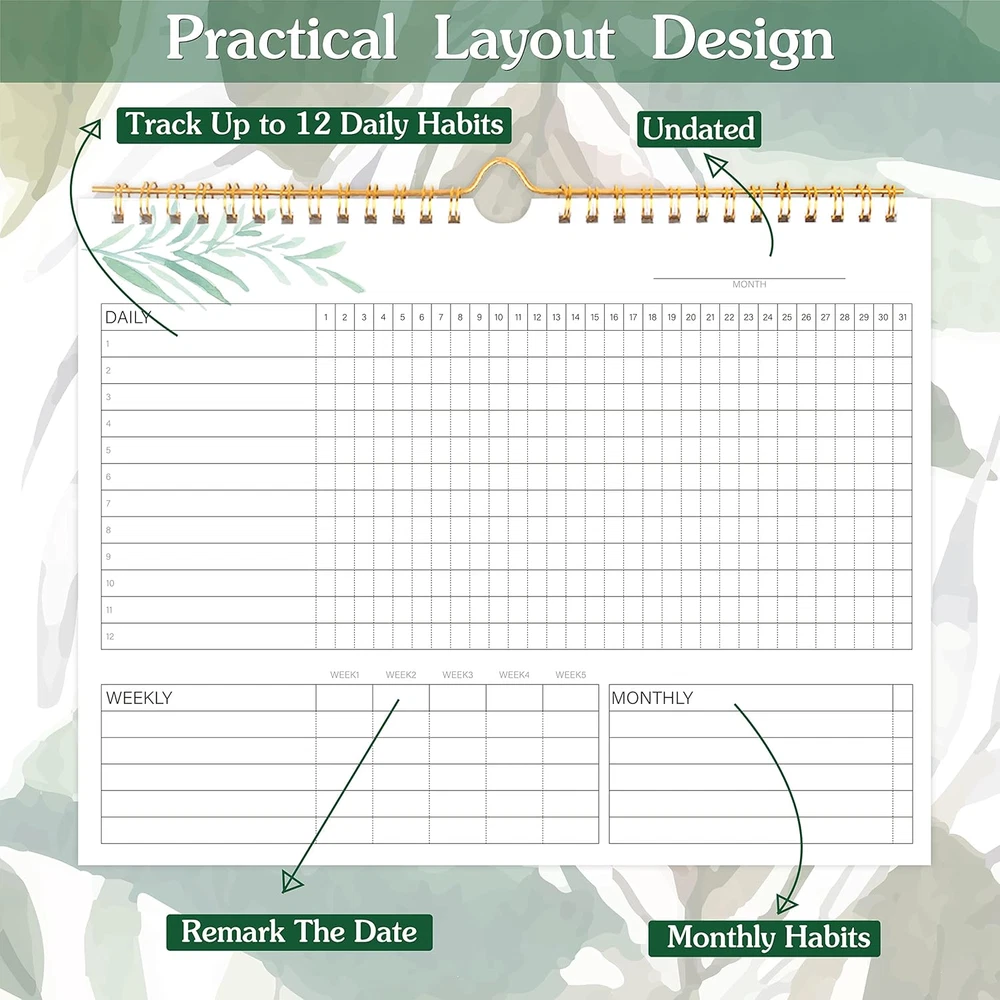 Store New Arrivals Add to Favorite View Feedback Contact Fast deliveries to the customer's home Quality customer service John Make the customers happy! Habit Tracker Calendar- 12 Months Undated Daily Weekly & Monthly Period Habit Tracker Journal, Greenery Floral, Spiral Binding with Writable Goals Habits Track and Self Care Office Supplies. 8"X10" Description BUILD THE LIFE YOU’VE ALWAYS WANTED – Never underestimate the power of habits. They are the building blocks of our lives. Adopting new habits, and breaking old ones, is a challenging process. habit tracker journal helps you stay motivated and disciplined by forming habits that will last a lifetime. Get inspired by your daily progress and become your best self! PREMIUM PAPER & EASY TO USE - This habit planner measures 10 inches wide by 8 inches long and is made of thick 120gsm premium paper that will neither bleed through nor deteriorate with everyday use. The monthly habit tracker has a sturdy hanging hole so that you can hang it anywhere and easily see it every day. BECOME HEALTHIER, HAPPIER & MORE PRODUCTIVE – With this habit tracker planner, you will be able to focus on adopting new habits in all vital areas of your life, improve your mental and physical wellbeing, relationships, and work-life balance. The weekly habit tracker will also be an immense help if you want to take up new hobbies or learn new skills but can never find the time. VERSATILE DESIGN & SUITABLE SIZE - This habit tracker is with the size of 8" x 10" and is made from high-grade materials with premium paper which makes you easy to write on and won’t let ink bleed through. Also, this habit tracker calendar has sturdy twin-wire binding and hanging hole for easy usage. Whether you need a healthy habit journal, goal planner, sleep tracker or others - we’ve got you covered! WIDE APPLICATIONS FOR VARIOUS PLACES - Giving you goals that you can visually see and fill out the habit tracker calendar. You can draw, paint, or even use habit tracker stickers on it and make it your very own and unique piece of art on your wall or desk. For this habit tracker, you can hang it completely flat on the wall or desk, or else show one side. Product Description Master the art of building good habits------Habit Tracker Calendar Practical function of the Habit Tracker ! This habit tracker features spaces for daily habits, weekly habits, monthly habits & undated space and other spaces for tracking. You can draw, paint, or even use habit tracker stickers on it and make it your very own and unique piece of art on your wall or desk. Practical function of the Habit Tracker ! It's made of thick 120gsm premium paper that will neither bleed through nor deteriorate with everyday use. High-quality papers bring you a smooth writing experience. Practical function of the Habit Tracker ! Different color plants make your life more colorful and bringing you a different visual experience every month. Practical function of the Habit Tracker ! This habit tracker calendar has sturdy twin-wire binding and hanging hole for easy usage, Gold color twin-wire binding adds a chic feeling to your room WIDE APPLICATIONS PREMIUM THICK PAPER 12 DIFFERENT DESIGNS TWIN-WIRE BINDING AND HANGER 12 SHEETS DIFFERENT STYLES! AN EASY WAY TO BUILD HABITS Do you struggle to introduce new habits into your routine and actually stick to them? This Habit Calendar is an effective and easy-to-use tool for tracking and developing habits that last. This new Habit Calendar will help you take small daily steps to build lasting habits and routines and transform your life for the better. Sheet Size 8 x 10 Inches Calendar Type Non Dated Format Notebook Paper Size 8 x 10 Inches Color Greenery Binding Spiral-bound Cover Material Paper Material Paper Material Type Paper Target Audience Adult Item Dimensions L x W x Thickness 10"L x 8"W x 0.2"Th Year 2021 Recommended Uses For Product [{'Tracking habits'}, {'Personal development'}, {'Productivity'}, {'Goal setting'}] Model Year 2021 ABOUT US We offer the best prices around on high quality products. Our E-store includes media such as books, movies, music and games while offering electronics, toys, sporting apparel, clothing, tools, general home, garden items and more. SHIPPING We are always working hard to ensure your package arrives as soon as possible. Please understand that some factors like weather, high postal traffic, and the performance of shipping companies are outside of our control. We offer free shipping to the lower 48 states and ship within 2 business days of payment, usually sooner. We do not accept P.O. Boxes. Please provide a physical address. For shipping outside of the continental USA, we only use eBay's Global Shipping Program. The item is shipped to KY and then sent to the rest of the world. International customers are responsible for all duties and taxes. Continue to 'check out' to calculate costs for shipping the item to your country. Messages regarding eBay's Global Shipping Program MUST be directed at eBay EXCLUSIVELY. RETURNS We offer a 30-Day Return Policy on items in which you are not completely satisfied with. You have the option of a full-refund or an exchange of the item. No returns are available on items shipped outside of the USA PAYMENT We accept PayPal. CONTACT US This page content is yet to come Please ad us to your favorite seller and visit again later Thank You CUSTOMER SATISFACTION We try our very best to make sure every customer is completely satisfied. If there's a problem, message us! We're happy to help. WE ACCEPT