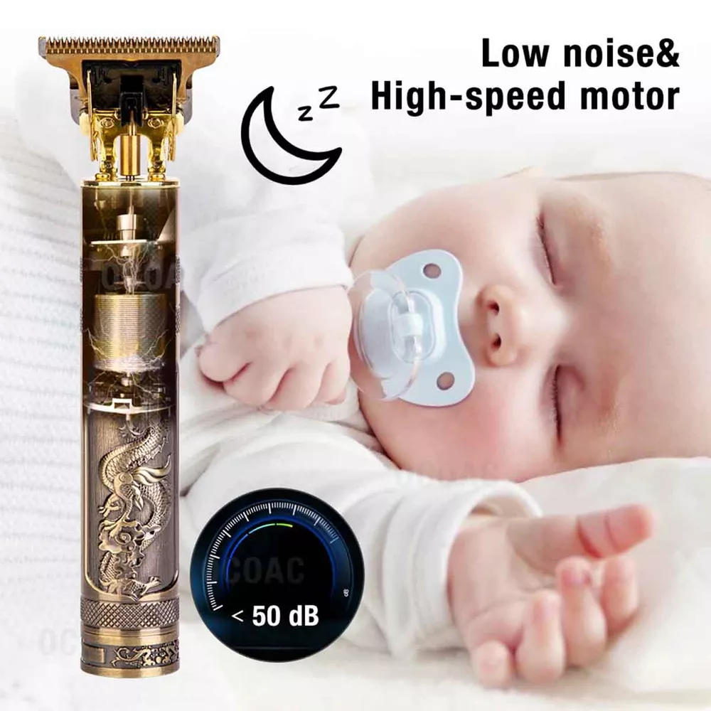 Product Details: trimmer for men is equipped with a powerful motor that helps you cut hair quickly and effortlessly. Low vibration, ultra-quiet professional design. A T-shaped cutter head, to meet your various hairstyle needs. cordless design allows you to cut the trimming process is more arbitrary. Let you experience the perfect haircut. Very suitable for home, work or travel. Features: 1. R-shaped sharp angle design The R-shaped acute angle design will not cause skin irritation due to angle problems during use, and it is sharp and wear-resistant. 2. Metal body design, with exquisite carving patterns on the handle, comfortable and non-slip, low noise, small and portable, can be easily created in Various hairstyles 3. Trimmer is powerful and sharp, capture and cut hair evenly, fast, and is labor-saving. waterproof hair trimmer, which allows you to quickly rinse the blade head in running water after use to keep it tidy. And when cutting, there is very low noise and does not interfere with your baby's sleep. 4. Exquisite packaging, perfect gift choice for boyfriend, husband, father, family and friend. Specifications: electric hairstyle outline trimmer Color: Bronze, Gold, Black Power: 5W USB Cable: 5V Battery: 1200mAh Li-battery Operating Time: 2 hours Charge Time: 2 hours Charging Method: Battery Charging Stand OR USB Charging Product Details: 1 x Hair clipper 1 x Charging 1 x Cleaning brush 1 x Manual 1 x Box 4 x Limit combs