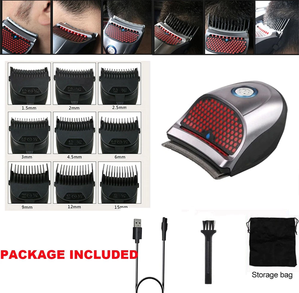 MULTIFUNCTION HIGH EQUIPPED KITS: with the palm size of your hand so you can easily reach the back of your head, neckline and around your ears to your maximum coverage, convenient for you to manage any hairstyle that you want, 9 Length Combs – Cuts 1/16 – 5/8 inches(1 5 to 15 mm) to achieve the perfect look you desire HAIR CLIPPERS TRIMMER FOR MEN: Ergonomically designed curve shape clipper with Stainless steel blade, can easily cut your hair throughly.Hair Cutting Shaving Machine with 9 Limited Combs WASHABLE REMOVABLE CURVED BLADE: With the waterproof function, it's Convenient to rinse clean under the faucet with washable blade area.Push the blade forward to release the blade and clean.Then keep in a cool place to dry RECHARGEABLE AND FAST CHARGING: Fast charge in 40 minutes, can use up max to 2 hours.Cordless design, easy to carry and put in the bag.maximum versatility and convenience, great tool for travel ,business trips or haircut at home. PORTABLE FOR TRAVEL: The advanced of lithium power provides 60 minutes of run time after a 3-hour charge, and the hair clipper can also be used corded for maximum versatility and convenience, it's an ideal choice for travel and business trips with storage pouch. REMOVABLE BLADE: It’s easy to clean and maintain the blade for consistent peak performance. EXTRA-WIDE CURVED BLADE: The blade works with the natural shape of your head to provide a close, even cut. It’s 57% wider* for maximum coverage and efficiency. WATERPROOF AND WASHABLE: The head can be rinsed directly with water, or it can be cleaned by opening the blade. SPECIFICATION: 1. Color: Black 2. Voltage- 110-120 VAC 3. Usage Time: 60Mins 9 4. Material: ABS + Stainless steel 5. Voltage: 110-240V 50/60Hz 6. Power: 3W 7. Charging Time: 5h 8. Length Combs:Cuts 1/16 – 5/8 inches(1 5 to 15 mm) 9. Multi-Size: 9 Length Combs – Cuts 1/16 – 5/8 inches(1 5 to 15 mm) to achieve the perfect look you desire 10. Blade: Stainless steel Size:4inch(H) x 2.8 inch (W) PACKAGE INCLUDED: 1 * Hand-held clipper 9 * Length-adjusting combs 1 * Cleaning Brush 1 * Storage Pouch