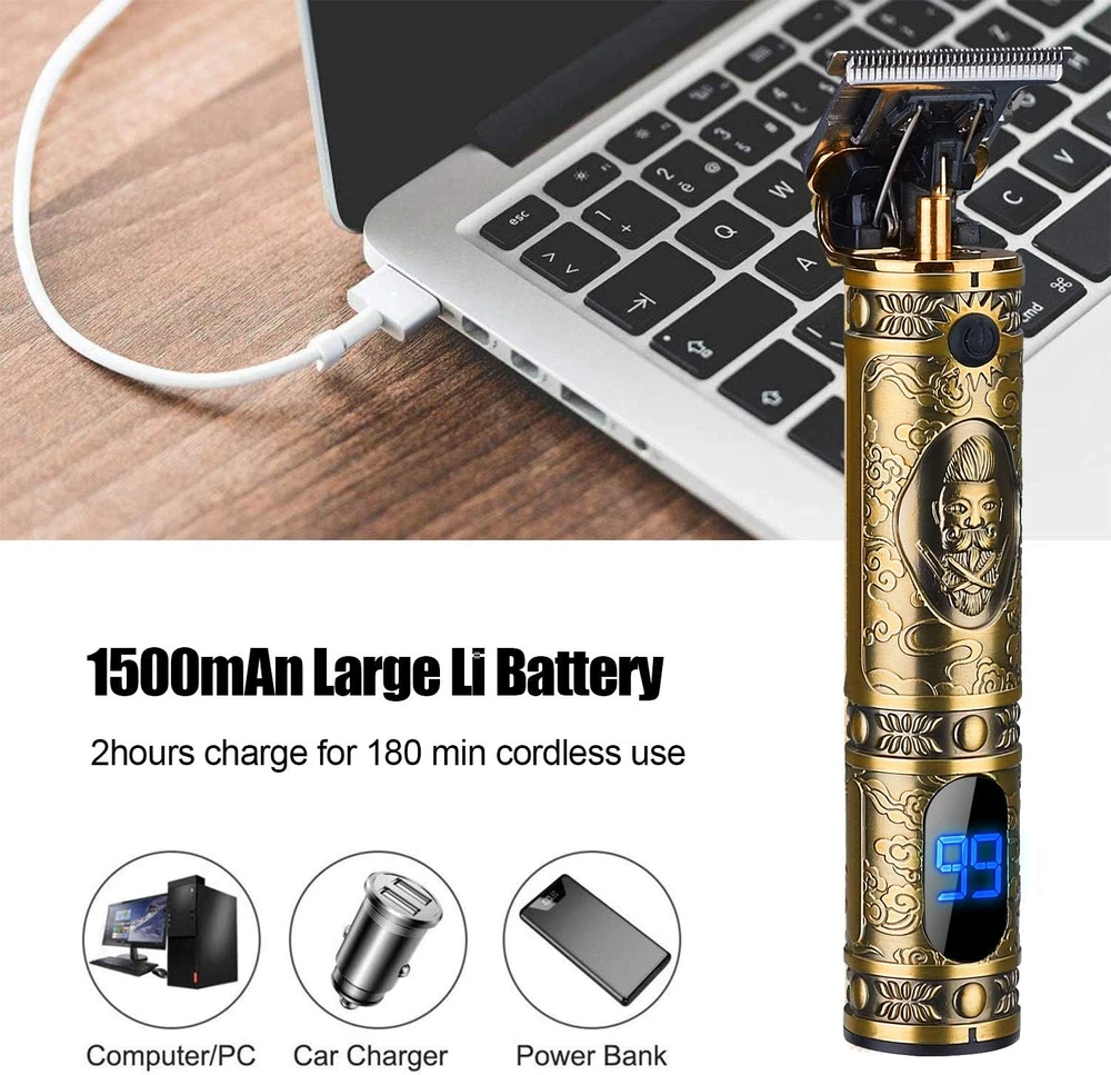 Multifunctional hair trimmer grooming kit for men: This professional hair clipper makes it easy to trim hair, beard, sideburns, face, and body hair. The R-shaped obtuse edge design makes gentle contact with the skin and will not harm your skin. Wonderful choice for your boyfriend, husband, and father! Super Sharp Blade: This beard trimmer is quipped with a self-sharpening precision stainless steel blade. Designed for smooth, quick, and precise clipping performance on all types of hair, without getting entangled in the hair, and help you to create a variety of hairstyles. LED Display & USB Fast Charging: Cordless clippers for hair cutting with smart LED display can display the percentage of electricity, so you can decide when to charge the hair edger after trimming. Built-in large capacity battery, enjoy 180 minutes of trimming after 2hours charge.The USB charging port is compatible with any USB power supply devices,such as laptops, car chargers, mobile power supplies, etc. Powerful Motor & Ultra Quiet Noise: 10W powerful motor of this barber trimmer is for increased rotational speed, super long lifespan-1000 hours. Even if you trim the thickest hair, it will not pull any hair. And the noise during cutting hair is extremely low, less than 60 decibels, so you can stay away from the troubles of noise.Very suitable for home, work. Ergonomic Design: All-metal body, the exquisite knight pattern on the handle is comfortable and non-slip. Ergonomically designed a streamlined soft curved body is easy to hold, the weight of this T-blade trimmer is 0.45lb, and a one-button design makes personal haircuts easy to operate. Product Description Gold Trimmers Clippers, Suttik Professional Hair Edgers Clippers, T-blade Trimmer for Barber,Cordless Clippers for Hair Cutting Suttik professional knight hair trimmer clipper is equipped with an advanced powerful motor and high-quality dual titanium blades. It can bring you a variety of hairstyles to meet everything you need for a successful haircut at home. Suttik hair clipper is defenitely a perfect gift for family and friends! Bring you the most comfortable haircut experience. What's in the box? 1* Hair Clipper ( no oil bottle ) 3* Guided combs (1mm, 2mm, 3mm) 1* Protection Cap 1* Cleaning Brush 1* Transparent Protective Cover 1* USB Charge Cable 1* User Manual Note: 1.Please don't worry if you receive the box or machine marked " Suttik " or " Resuxi " brand, they are all brands from our company . 2. It's normal if you find some oil in the blade for maintenance. 3. This hair trimmer can be very close trim, but it's not zero gapped . it leaves 1mm hair length. 4. Please charge as soon as possible while the battery power is lower than 15 . Specification: Power: 10W Rotational Speed: 7000RPM Charging time: 2 hours Working time: 180 minutes Blade material: Titanium Stainless Steel Features: LCD Digital Screen The new LCD display design allows you to clearly see the remaining power, without worrying about problems caused by insufficient power. Charging Time The edger trimmer's rechargeable battery offers up to 180 minutes of operation time after a full 2 hour charge. Sharp T-Blade Titanium stainless T-blade for lining, designing and dry shaving, meet your demand for different haircut style. Hair Trimmer Cut your hair safely and easily, give you a soft and comfortable cutting experience. Precision Trimmer Suttik hair trimmer is equipped with 3 guide comb. The narrow design of the full-metal precision trimmer makes it easy to precisely edge and finish small details. Beard Trimmer Accurate grooming hair on the face and beard edges, trimming corners and contours. Body Trimmer Remove body hair effectively without painfully tugging or hurting.