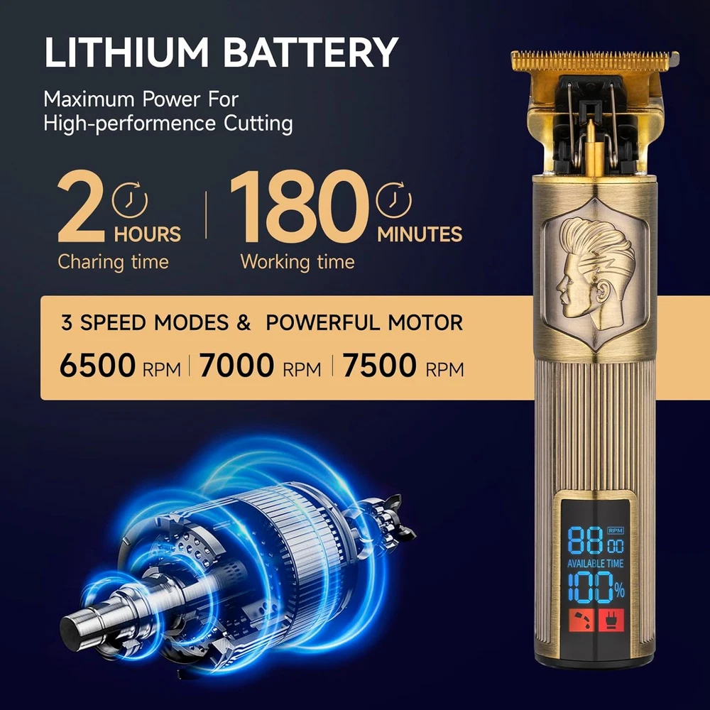 【Premium T Blades & Zero Gapped Hair Trimmer】T Blade is made of alloy and can be close to the skin for a zero-gap trim, giving you a clean and close shave without pulling or missing any hair. Say goodbye to skin irritation and cuts. Say goodbye to expensive salon visits and achieve your desired hairstyle with confidence and ease. 【Ergonomic Design】Our clippers for hair cutting adopts an ergonomic handle, which is comfortable to grip, easy to operate, reduces hand fatigue, and can better control the direction of hair cutting to achieve your ideal styling effect. 【Cordless Clippers & USB Rechargeable & Smart Display】USB cable can be compatible with any USB charger interface. Easy to carry and use. It only takes 2 hours to fully charge and provides up to 180 minutes of working time. There is also an lcd display on the hair clipper to remind you of the battery, no more worrying about when to charge. 【Multifunction Mens hair clippers】Professional mens hair trimmer can meet any man's hair styling needs, such as such as lining, sculpting outline, sideburns, also can be used to trim beard and body hair. Keep your look fresh, polished, and on-trend with our reliable and efficient t liners clippers! Upgrade your grooming routine today! 【Best Gift Choice】Our t blade trimmer is equipped with three guide combs (1.5mm,3mm,4.5mm), Lubricating oil, blade cover,USB cable, a comb and a brush.This edgers clippers is the perfect gift for the special man in your life on Christmas Day, Valentine's Day, Father's Day, etc. Product Description
