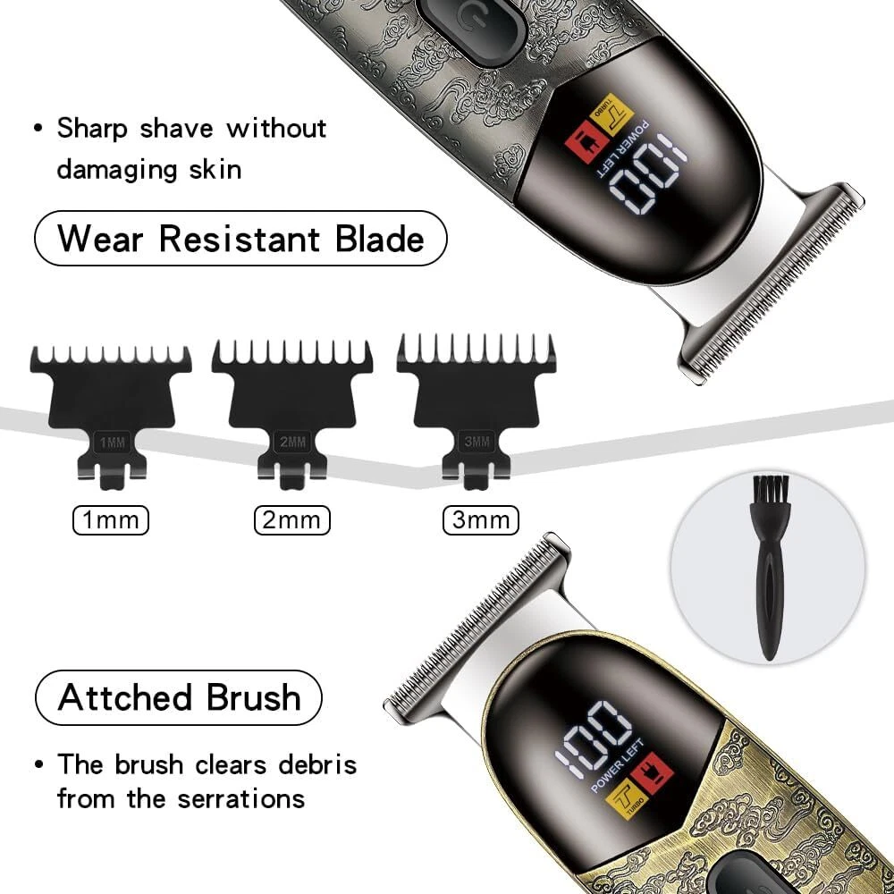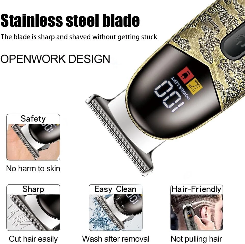 Free eBay listing template designed by dewiso.com Hair Trimmer for Men Professional, Grooming Cutting Kit, Mustache T Blade Liners Trimmer Electric Shavers, Cordless Zero Gapped Edgers Clippers Barber Supplies, Gifts for Men (Gray) FREE AND FAST SHIPPING! About this item 【Durable Zero-Gapped Blade Set】 Precision Cutting with our cordless trimmer to achieve sharp, clean lines every time with, equipped with durable DLC (Diamond-Like Carbon) coated blades for unparalleled cutting performance. 【Consistent Performance with a Fast Rotary Motor】 Our trimmer's advanced motor exceeds 7500 RPM, coupled with a 3V constant power supply, providing steady cutting speeds. This ensures optimal operation for precise and reliable results during every grooming session. 【Quiet T-Blade】 Our T-blade trimmer ensures impeccably sharp lines with whisper-quiet operation below 75dB. It offers a tranquil grooming experience without compromising on performance. 【Rechargeable Cordless Convenience】 Experience the freedom of our professional hair and beard trimmer, featuring a robust cordless design and USB-C fast charging. Enjoy up to 120 minutes of precise trimming with a single charge for seamless grooming anytime, anywhere. 【Professional & Personal Trimmer】 Suitable for expert barbers and grooming enthusiasts alike, this trimmer is versatile enough to serve everyone’s needs. It delivers high-quality performance whether used in a professional setting or for personal grooming at home. Product We offer a 30-Day Return Policy on items which you are not completely satisfied with. You have the option for a full-refund or an exchange of the item. No returns are available on items shipped outside of the US . Shipping We offer Free Shipping to the US and ship within 2 business days of payment, usually sooner. We use UPS express shipping. That's why your products are usually delivered within 3 days . Contact We try our very best to make sure every customer is completely satisfied. If there's a problem , message us! We're happy to help. 24/7 live chat available.