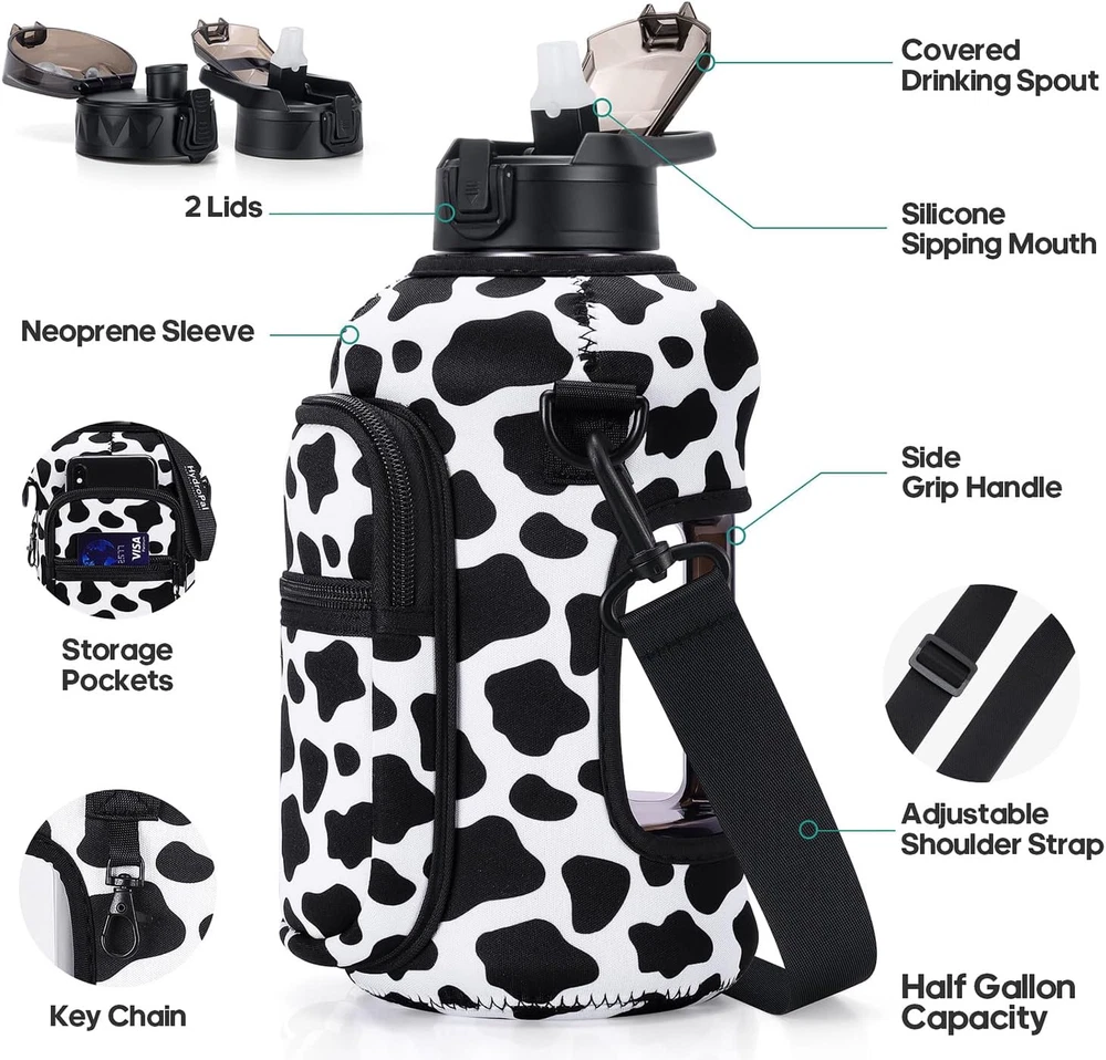 Store New Arrivals Add to Favorite View Feedback Contact Half Gallon Water Bottle with Storage Sleeve, 74Oz Large Water Bottle with 2 Lids(Straw Lid and Chug Lid), Big Sports Water Jug for Gym with Strap, Bpa-Free Drink Container with Handle Description Age Range Description Any Age Group Bottle Type Standard Bottle Capacity 4.6 Pounds Number of Items 1 Material Type Plastic Theme Sport Item Dimensions W x H 5"W x 10"H Finish Types Glossy Item Shape Round Unit Count 74.0 Ounce Material Plastic Container Type Bottle Model Name 221 Additional Features Leak Proof Reusability Reusable Sport Type Cycling, Running, Yoga, Hiking Color A1:Cowbell Product Care Instructions Hand Wash Only Recommended Uses For Product Travel, School Material Type Free Bisphenol A (BPA) Free Style Name [INFERS] Practical for sports or outdoor activities Leakproof Design: The water bottle is designed to be leakproof and easy to carry, perfect for workouts, travel, running, hiking, cycling, camping, yoga, and more. Adjustable Strap: Comes with an adjustable shoulder strap and a removable/adjustable strap for multiple carrying options and keeps your hands free. Hydration On-The-Go: The flip top lid allows for easy opening and fitting ice cubes for cold drinks on the go. Multi-Purpose Storage: Comes with a neoprene sleeve that protects the bottle and absorbs sweat, and features two zipper pockets and a mesh pocket to hold your phone, headphones, snacks, keys, and more. Durable Material: Made from thicker plastic with a silicone sipping mouth for durability and to protect your teeth from bruising. Product Description ABOUT US We offer the best prices around on high quality products. Our E-store includes media such as books, movies, music and games while offering electronics, toys, sporting apparel, clothing, tools, general home, garden items and more. SHIPPING We are always working hard to ensure your package arrives as soon as possible. Please understand that some factors like weather, high postal traffic, and the performance of shipping companies are outside of our control. We offer free shipping to the lower 48 states and ship within 2 business days of payment, usually sooner. We do not accept P.O. Boxes. Please provide a physical address. For shipping outside of the continental USA, we only use eBay's Global Shipping Program.The item is shipped to KY and then sent to the rest of the world. International customers are responsible for all duties and taxes. Continue to check out in order to calculate costs for shipping the item to your country. Messages regarding eBay's Global Shipping Program MUST be directed at eBay EXCLUSIVELY. RETURNS We offer a 30-Day Return Policy on items which you are not completely satisfied with. You have the option for a full-refund or an exchange of the item. No returns are available on items shipped outside of the USA. PAYMENT We accept PayPal. CONTACT US This page content is yet to come Please ad us to your favorite seller and visit again later Thank You CUSTOMER SATISFACTION We try our very best to make sure every customer is completely satisfied. If there's a problem, message us! We're happy to help. WE ACCEPT Copyright © 2021 AutoDS. | All Rights Reserved