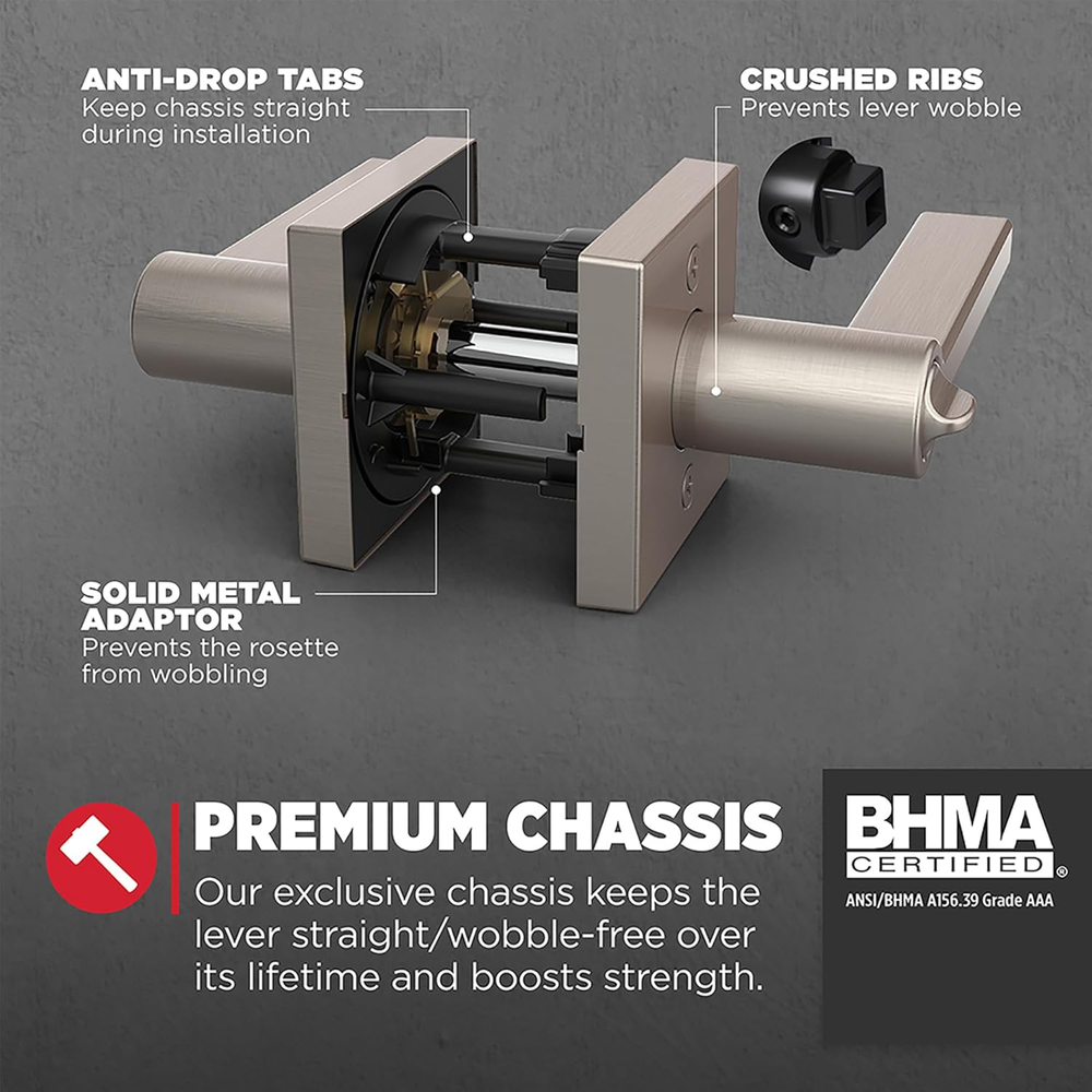 Polished Chrome Square Keyed-Alike Entry Levers for Interior and Exterior Doors