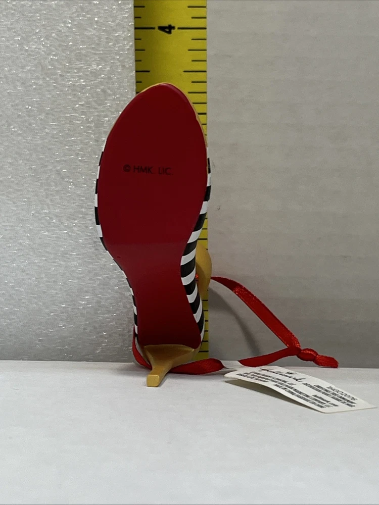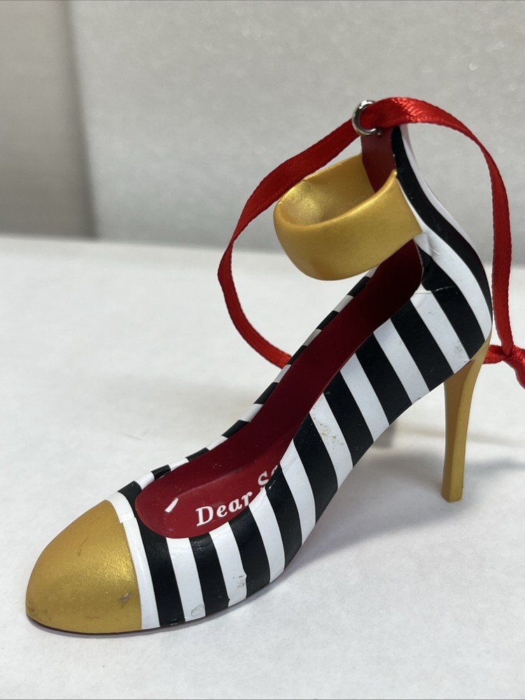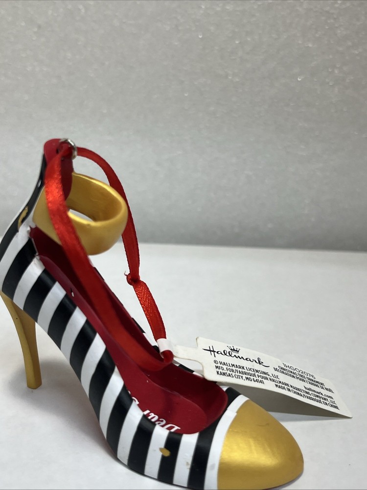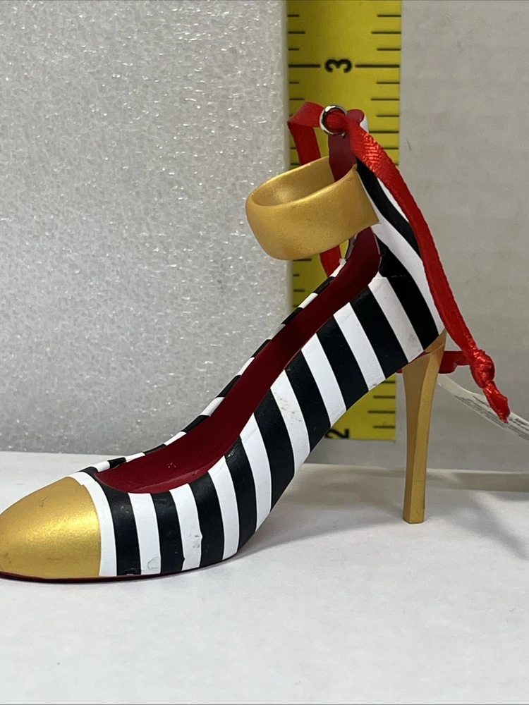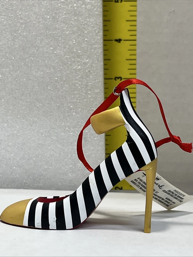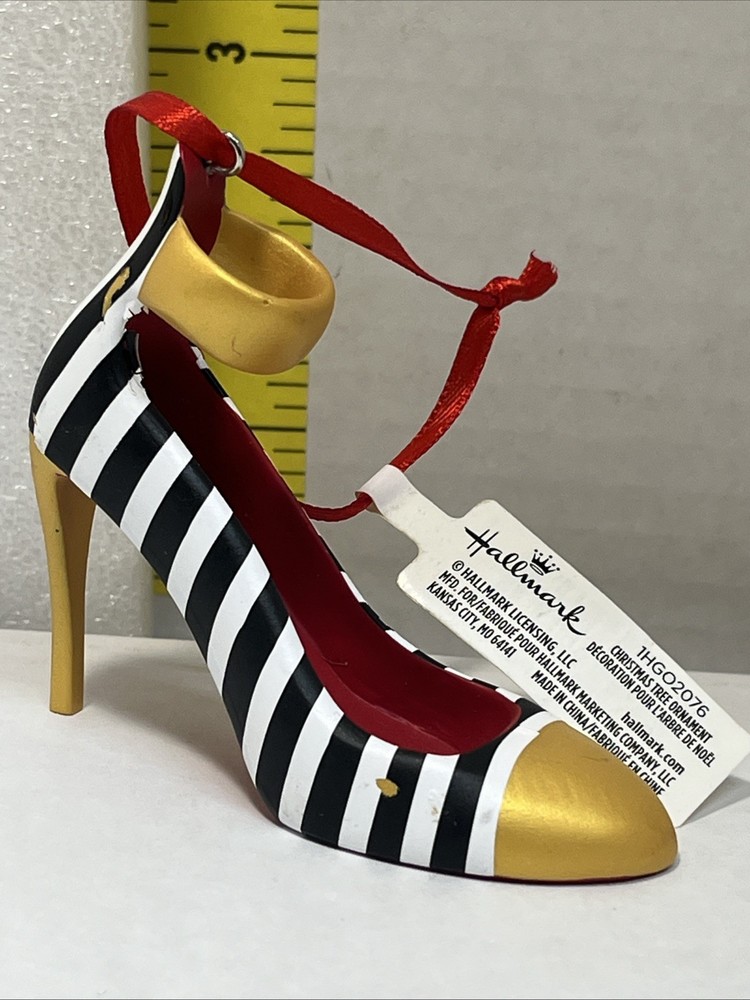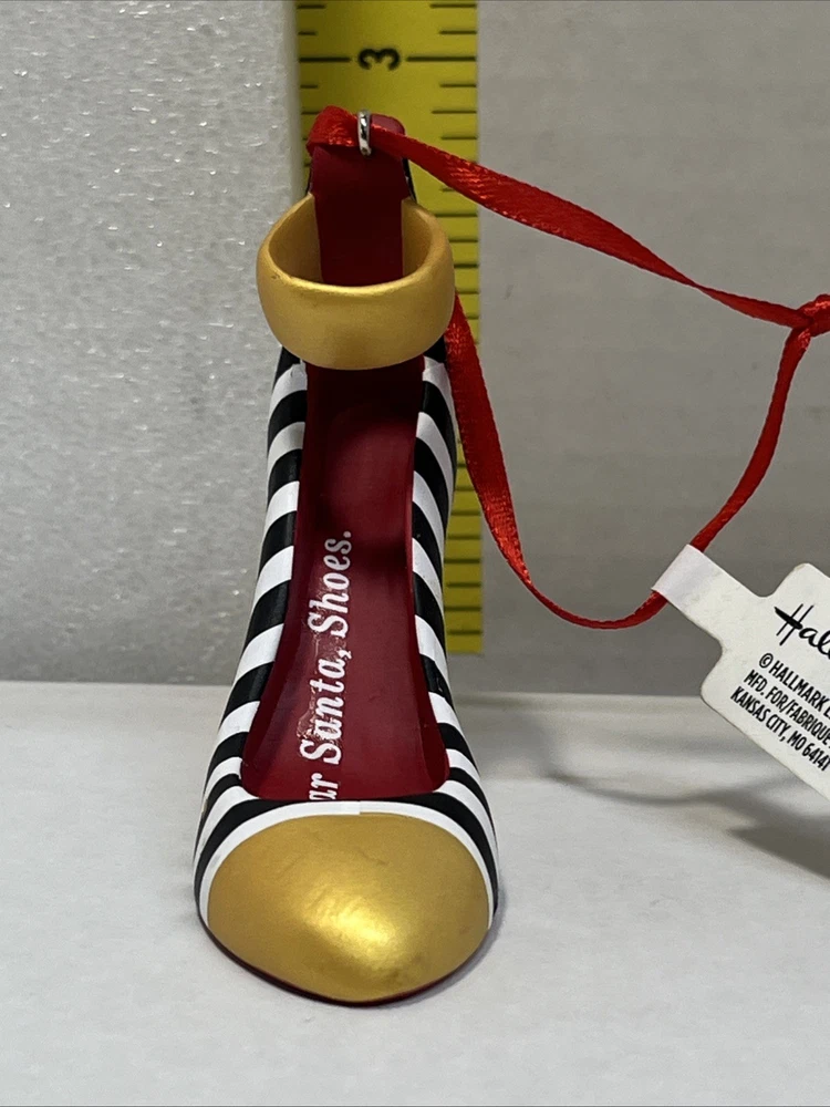 Hallmark Christmas Gift Ornament Dear Santa, Shoes. Striped High Heels New w Tag This fun High Heel Ornament is perfect for any "Fashionista"! Designed and presented at Hallmark Gold Crown Stores in 2019, it is part of the Hallmark Gift Ornaments. These ornaments were themed and displayed in the stores with other Hallmark and Seasonal gift items and were not part of the Keepsakes. This ornament comes in a Hallmark Gift Box It is part new carry-over stock from now closed Hallmark Gold Crown store. See actual photographs, and measurements with ruler, in the photos above. Ships USPS Ground Advantage