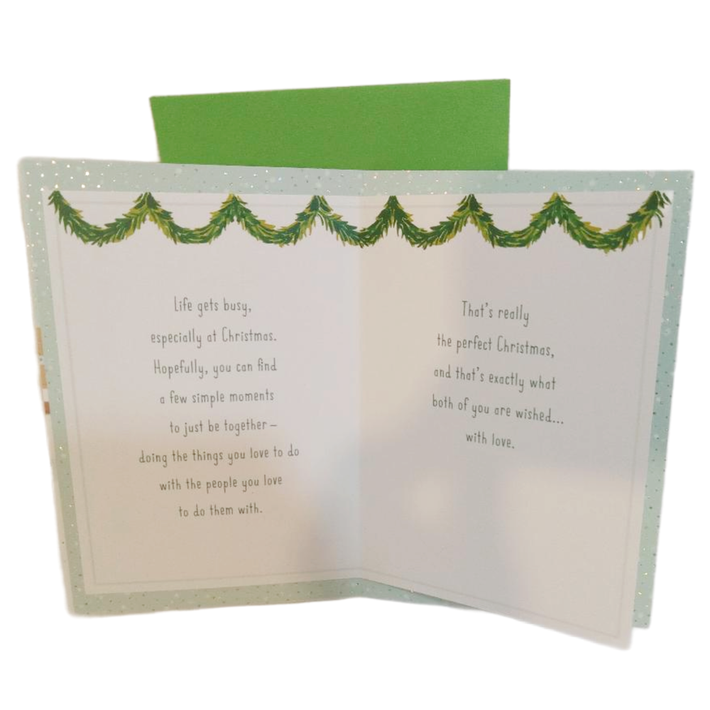 Hallmark Greeting Card Merry Christmas For Son And Daughter Green Red 8x5.5 This Hallmark Greeting Card is a modern, multicolored Christmas card featuring a thoughtful design for Son and Daughter. The folded card includes an envelope and measures 5.5 x 8 inches, making it a convenient and heartfelt way to send warm wishes during the holiday season. Made in the United States, this card captures the essence of Christmas with a festive green and red color scheme, perfect for spreading holiday cheer. *** Item Descriptions *** Brand - Hallmark Condition - New Color - Red, Green, White Type - Greeting Christmas Card Theme - Christmas Holiday Scene Recipients To - Son & Daughter Height - 8" Inch Width - 5.5" Inch UPC# - 795902522858