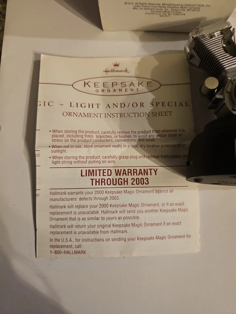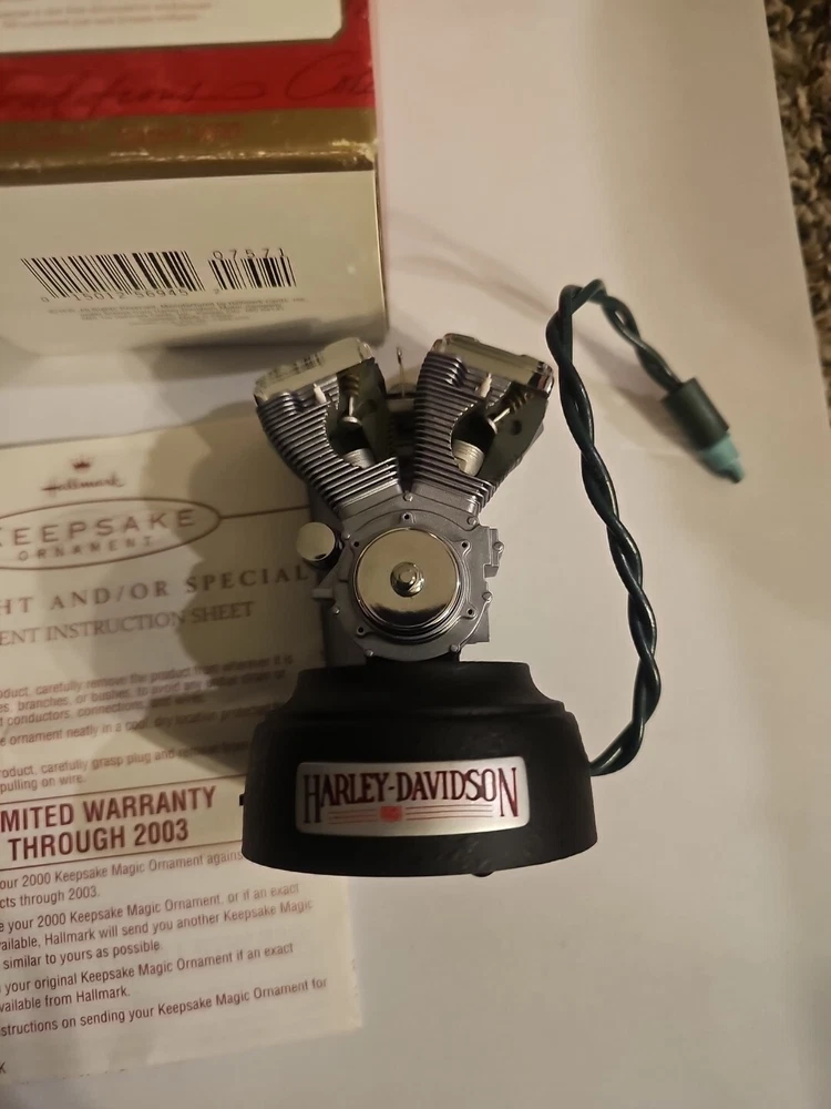 This Hallmark Keepsake Big Twin Evolution Engine ornament is a must-have for any Harley-Davidson fan. Featuring lights and motion, it brings the iconic engine to life. The ornament was manufactured in 2000 and is part of the Harley-Davidson collection. Perfect for adding a touch of holiday spirit to your décor, this ornament is sure to impress.