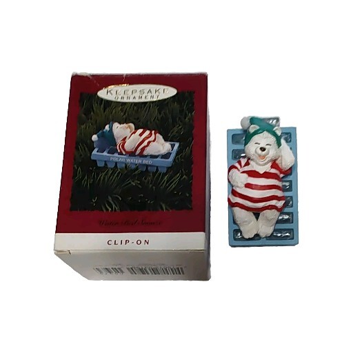 Hallmark Keepsake Clip On Ornament Water Bed Snooze Polar Bear Vintage 1993