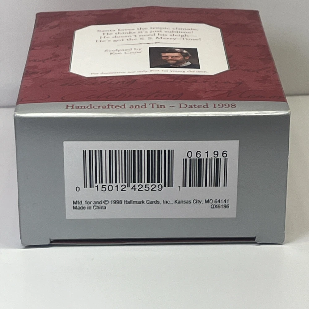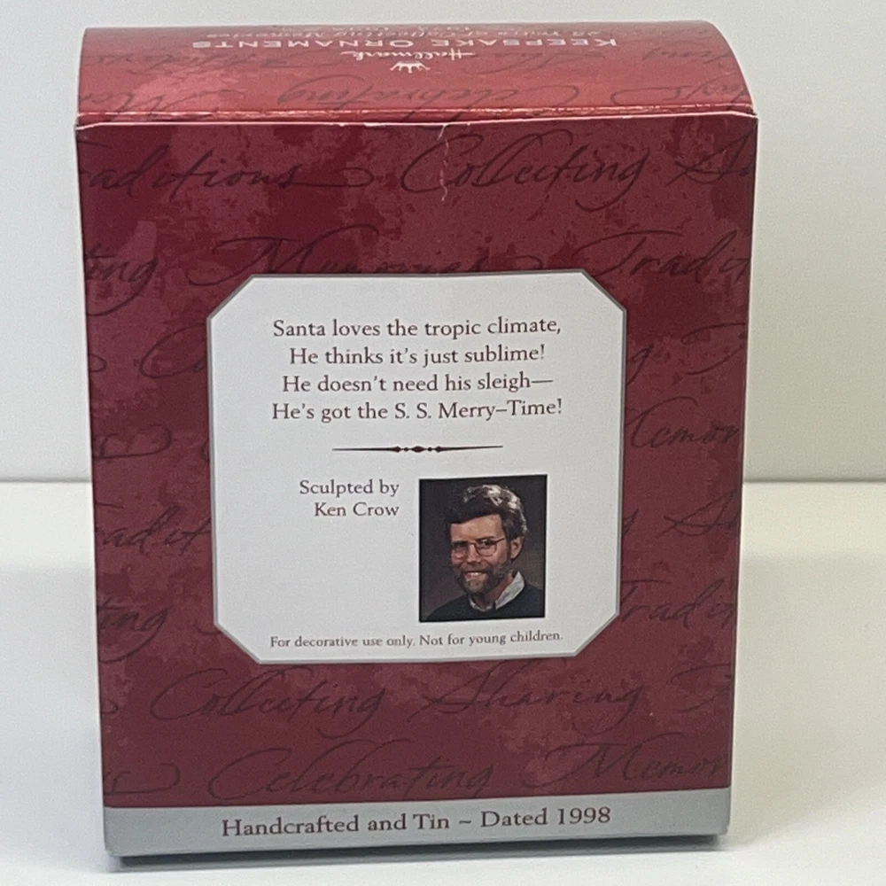 Theme: Christmas Seller Notes: “Light box wear with ornament in like new unused condition.” Type: Ornament Subject: Boat Year Manufactured: 1998 Collection: Ornaments Occasion: Christmas Material: Tin Brand: Hallmark