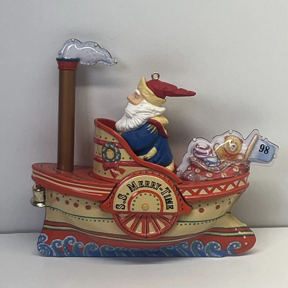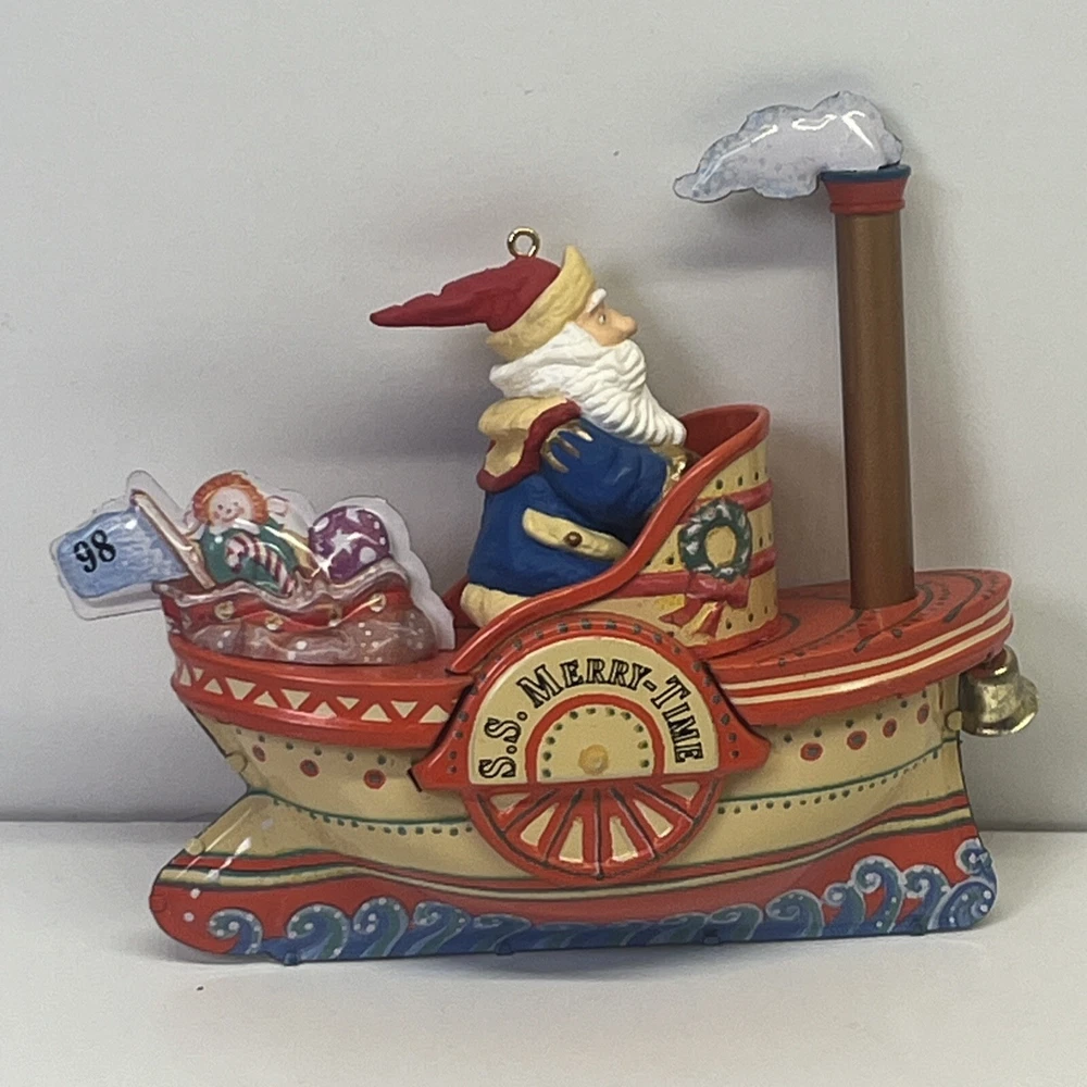 Hallmark Keepsake Ornament Cruising Into Christmas Santa Steam Boat Tin 1998