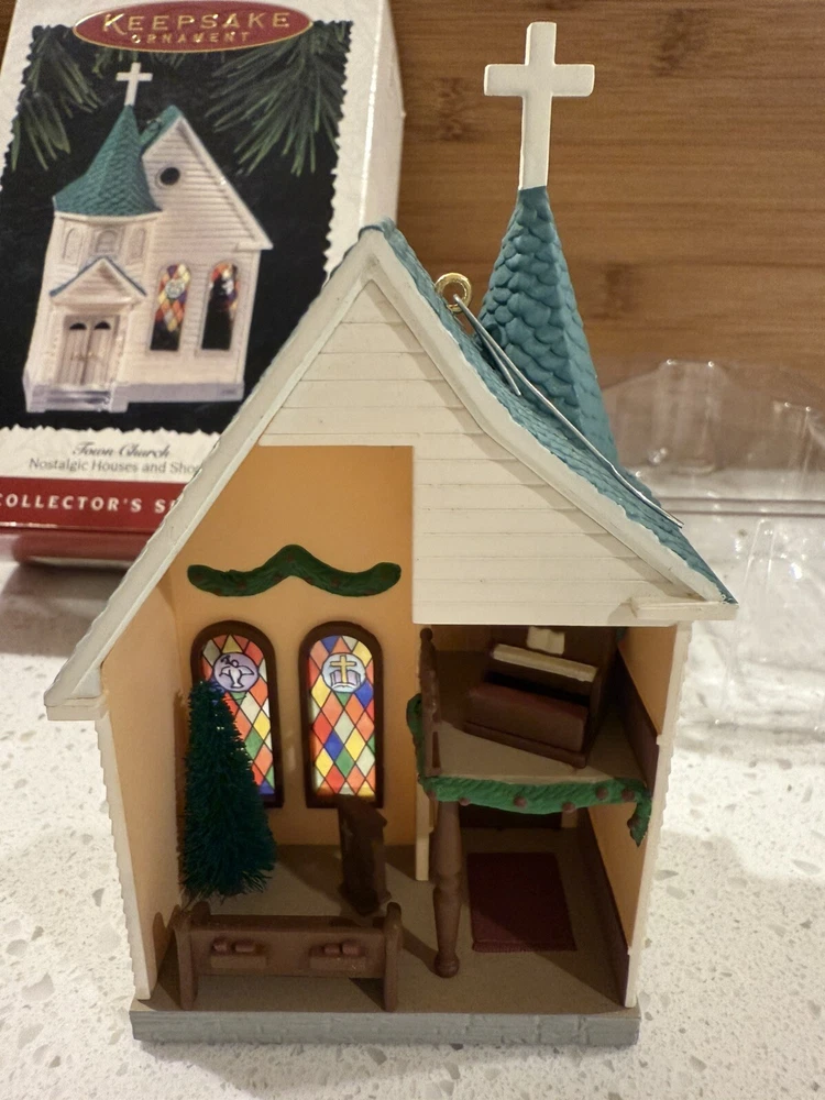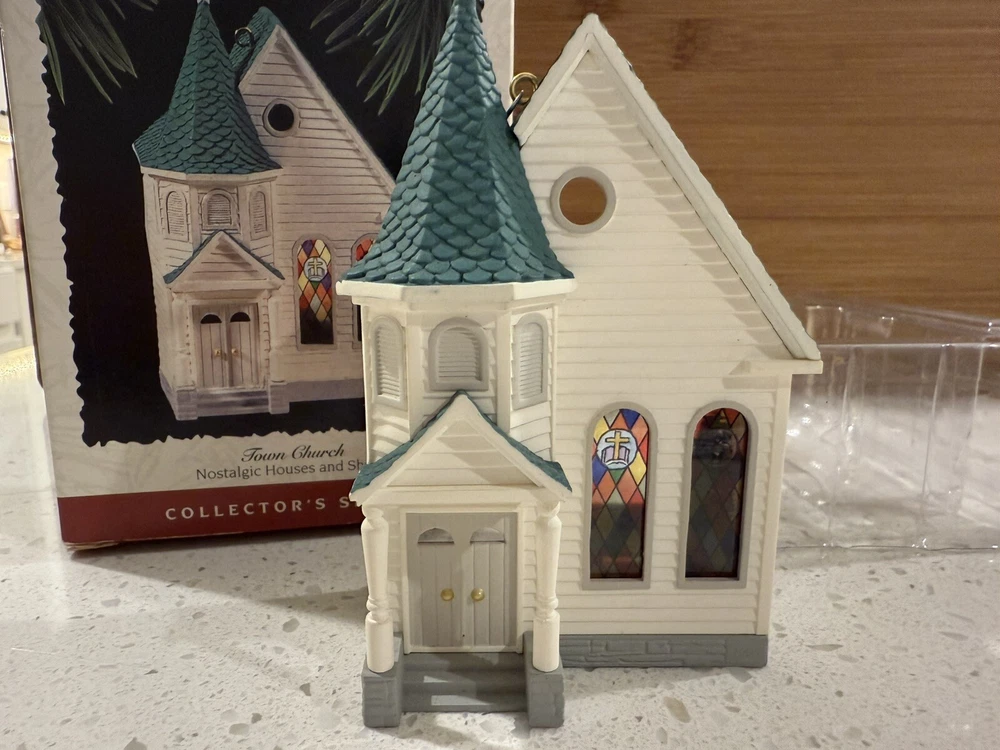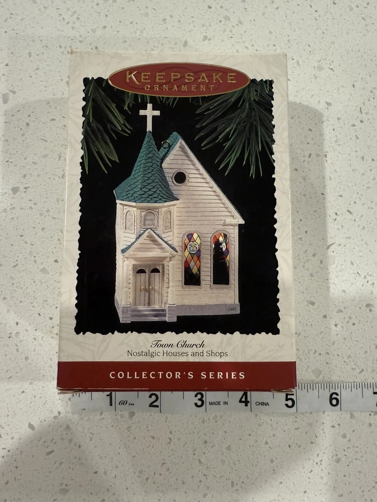 This Hallmark Keepsake Ornament is a beautiful addition to any Christmas tree. The ornament features a charming town church design with intricate details of nostalgic houses and shops. Made of durable plastic, this vintage ornament was manufactured in 1995 and is part of the collector series. The set includes one ornament and is perfect for anyone who loves collecting unique Christmas decorations. The ornament is in great shape and comes in an open box, ready to be displayed on your tree. Add this beautiful piece to your collection today! New in open box. From a smoke free home.
