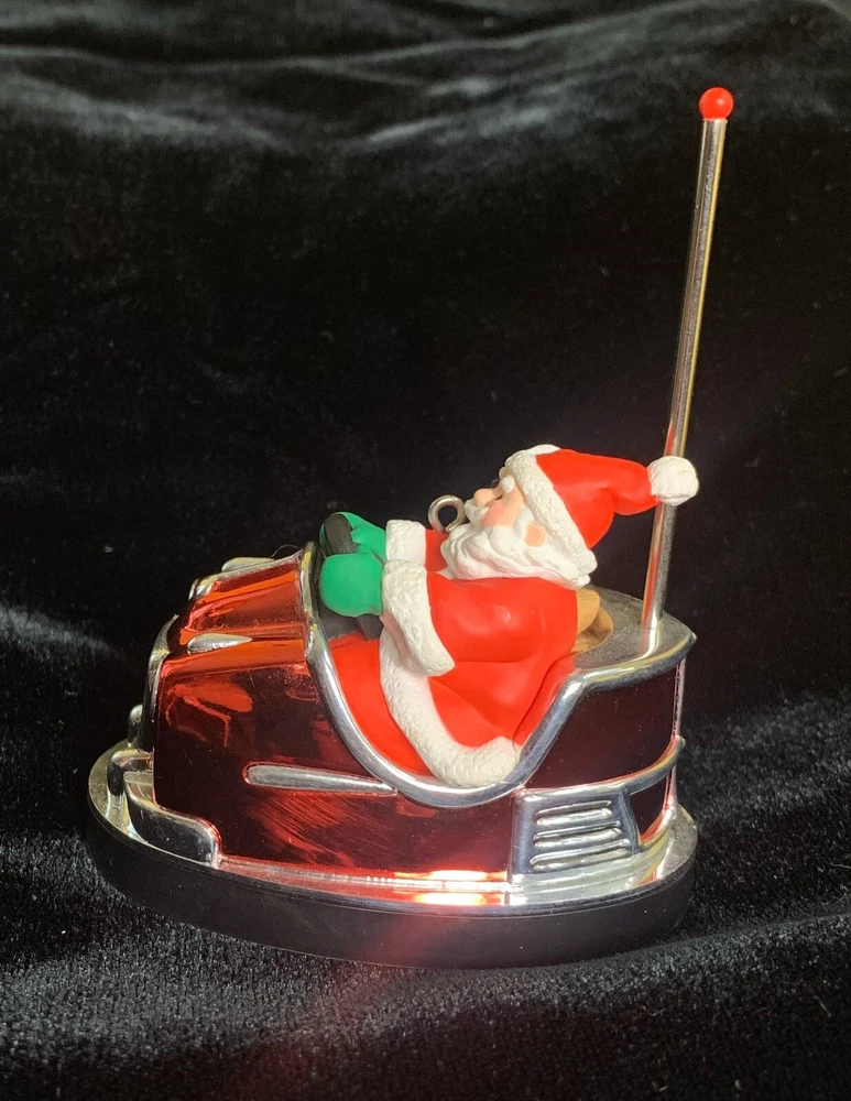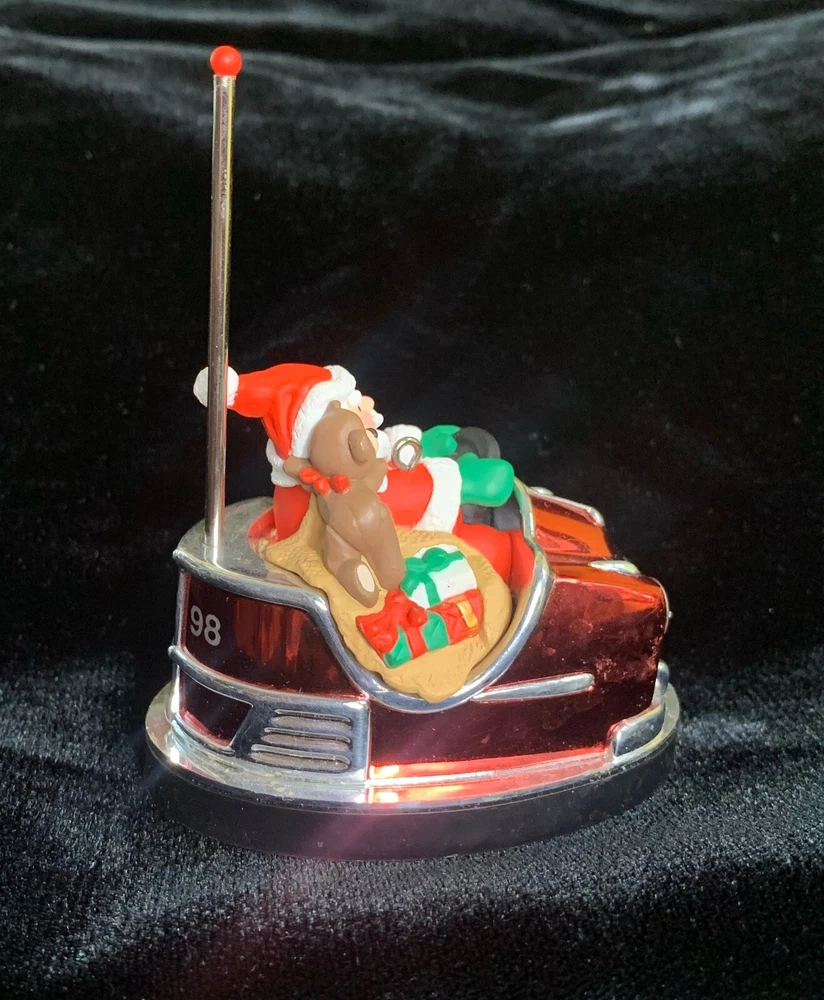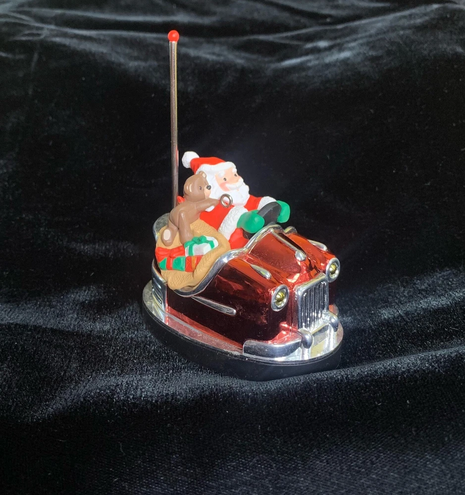 Celebrate the holiday season with the Hallmark Santa's Bumper Car ornament, a charming addition to your Christmas tree that embodies the spirit of giving and the joy of the season. Crafted in 1991, this medium-sized keepsake features Santa Claus in a festive bumper car, bringing a whimsical touch to your holiday decor. The handcrafted plastic composite ornament is designed to hang gracefully on your tree, brightening your celebration with its cheerful depiction. This collectible ornament is a part of Hallmark's cherished ornaments from the 1990s, making it a nostalgic piece for those who appreciate vintage holiday memorabilia. Its classic design is perfect for anyone seeking to add a touch of tradition to their festive decorations. With its universal appeal, it can be a delightful gift for a wide range of recipients or a splendid addition to your own collection of holiday keepsakes.