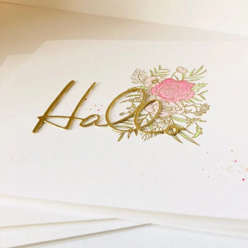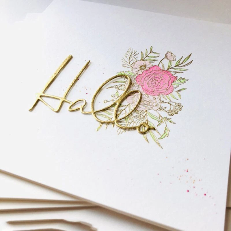 Hallo Metal Cutting Dies Stencil Scrapbooking DIY Album Stamp Paper Card Emboss and high Features: This dies stencil template is carbon steel You can use this die to create incredible shapes from your favorite cardstock and paper, allowing your card and scrapbook designs to be totally unique A good your kids to cultivate their hands-on ability Your self-made will be a big surprise to your for scrapbooking, card making, paper theme invitations, pocket scrapbooks, album decoration, photo frame Specifications: Carbon Steel Dimension: app.7x4.9cm/2.76x1.93in Color: Silver Pattern: Hallo Quantity: 1 Pc Note: No retail package. 1cm=10mm=0.39inch. Please allow 0-1cm error due to manual measurement. pls make sure you do not mind before you bid. Due to the difference between different monitors, the picture may not reflect the actual color of the item. Thank you! Package includes: 1 x Dies Stencil (other accessories in the picture is not included.)