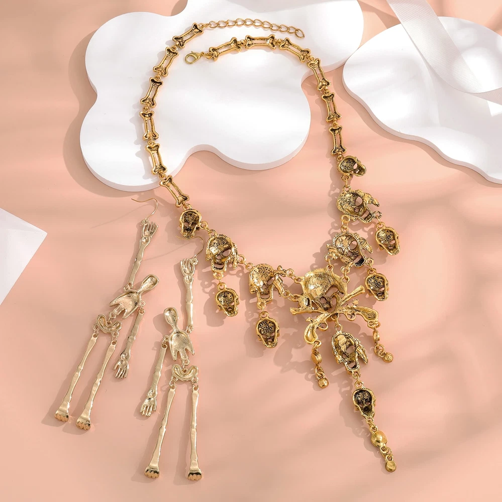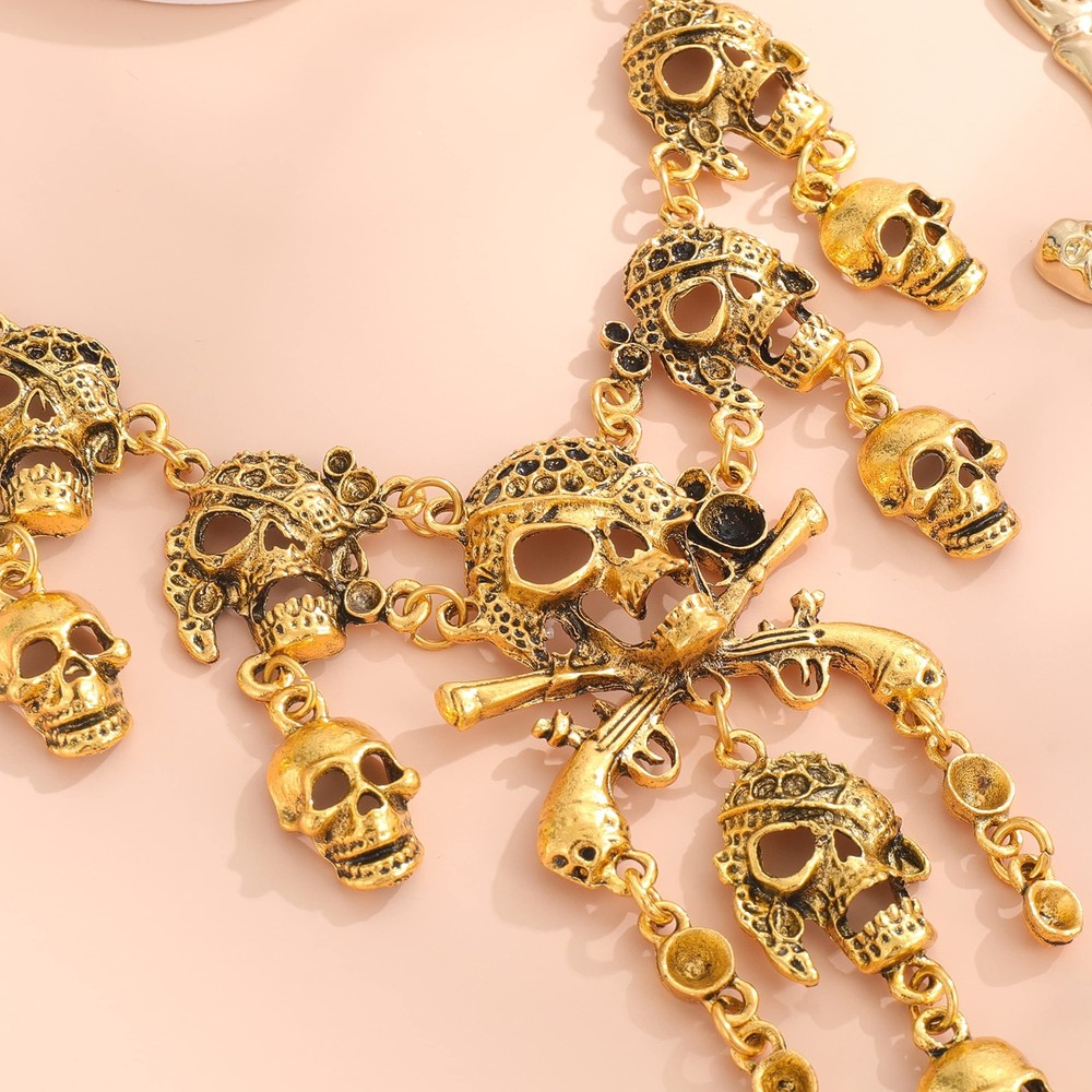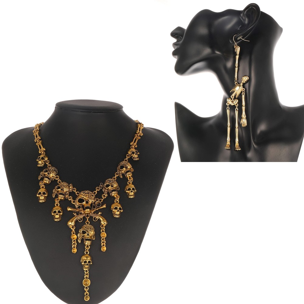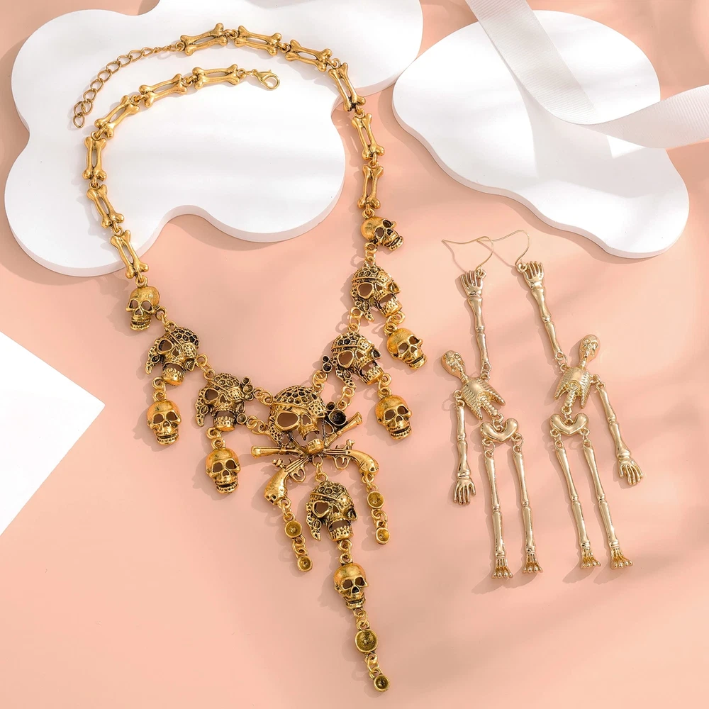 Halloween Pirate Skull Jewelry Set for Women - Punk Horror Necklace & Earrings