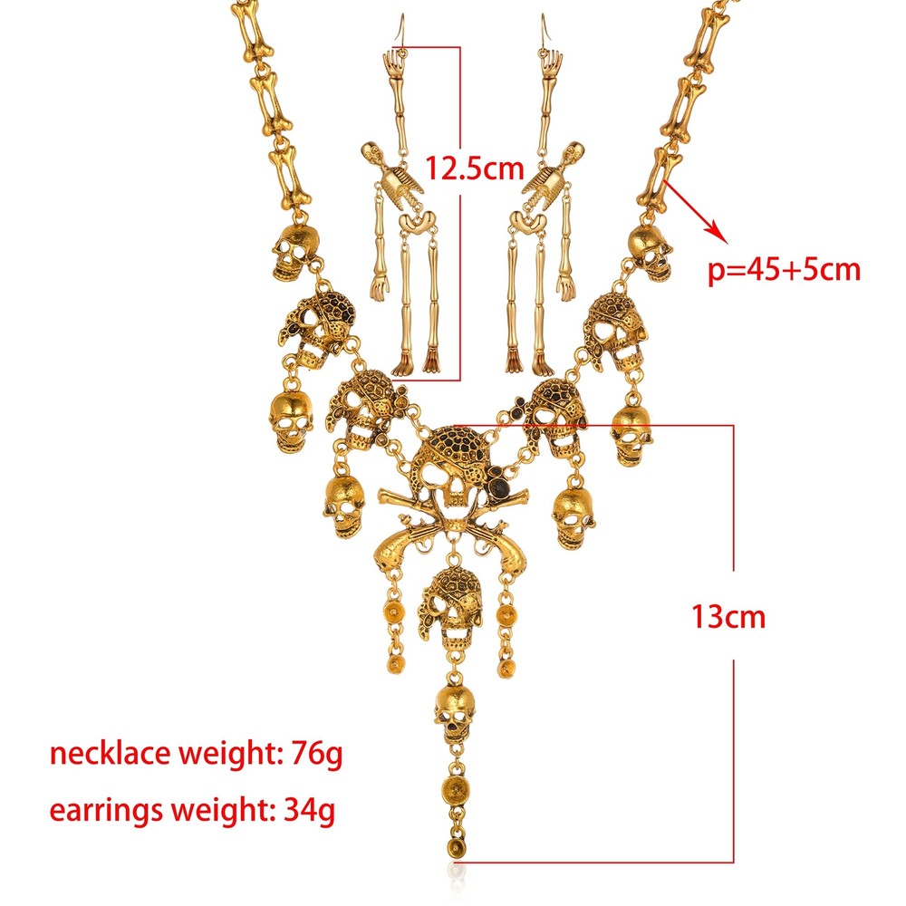 Halloween Pirate Skull Necklace Earrings Jewelry Sets for Women Horror Punk Bib Collar Necklaces Product Details Color: Skull skeleton earrings necklace sets Brand: K-toobeely MPN: GD-WSTZ001 UPC: 742440767463 EAN: 0742440767463 Item Weight ‏ : ‎ 4.73 ounces Department ‏ : ‎ womens Date First Available ‏ : ‎ November 9, 2024 Brand, Seller, or Collection Name: K-toobeely Material: Zinc Gem Type: No Gemstone Chain: Box Clasp: Lobster Clasp Metal: alloy Metal stamp: No Metal Stamp Stone Creation Method: Natural You will Receive The package will get 1 exquisite skull vintage gold necklace and 1 pair of skull gold earringsProduct Size necklace length: 45 + 5cm, weight: 80g; earrings: 18g, length: 5.3cm, a perfect outfit matchProduct Features Hypoallergenic, Do not fade, new design, Scratch-resistant, strong connection, no accessories but droppingScope of Application This is a great for Halloween gifts, Easter Day gifts , horror themed party classic accessories. Wearing it with a variety of clothes will be admired by friends.After-sales Service What you need to know is that when the necklace you received is defective, you can contact customer service to replace it for you. After all, the necklace will inevitably wear out during transportation.