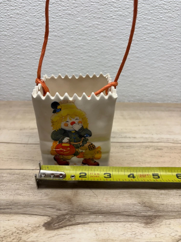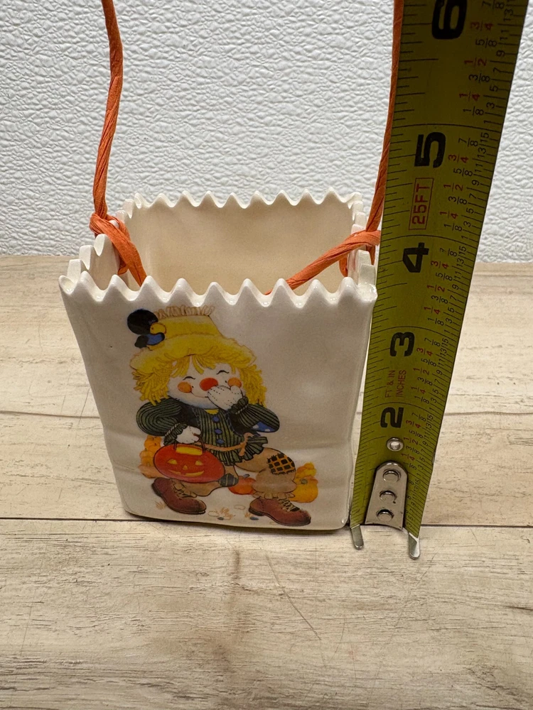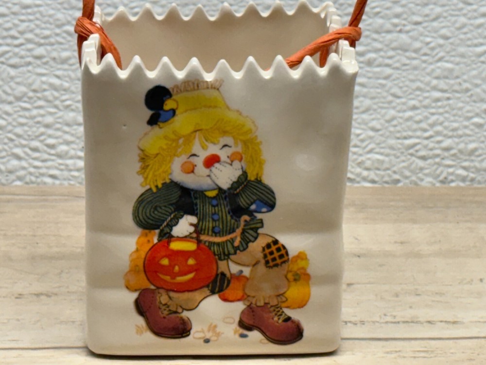 Halloween Scarecrow Ceramic Candy Bag.Very good condition,no cracks,no chips,no scratches.There are some imperfections from production.Please see all pictures for details. WE OFFER COMBINED SHIPPING AND MULTI-ITEM PURCHASE DISCOUNTS.IF YOU HAVE ANY QUESTIONS, PLEASE LET US KNOW