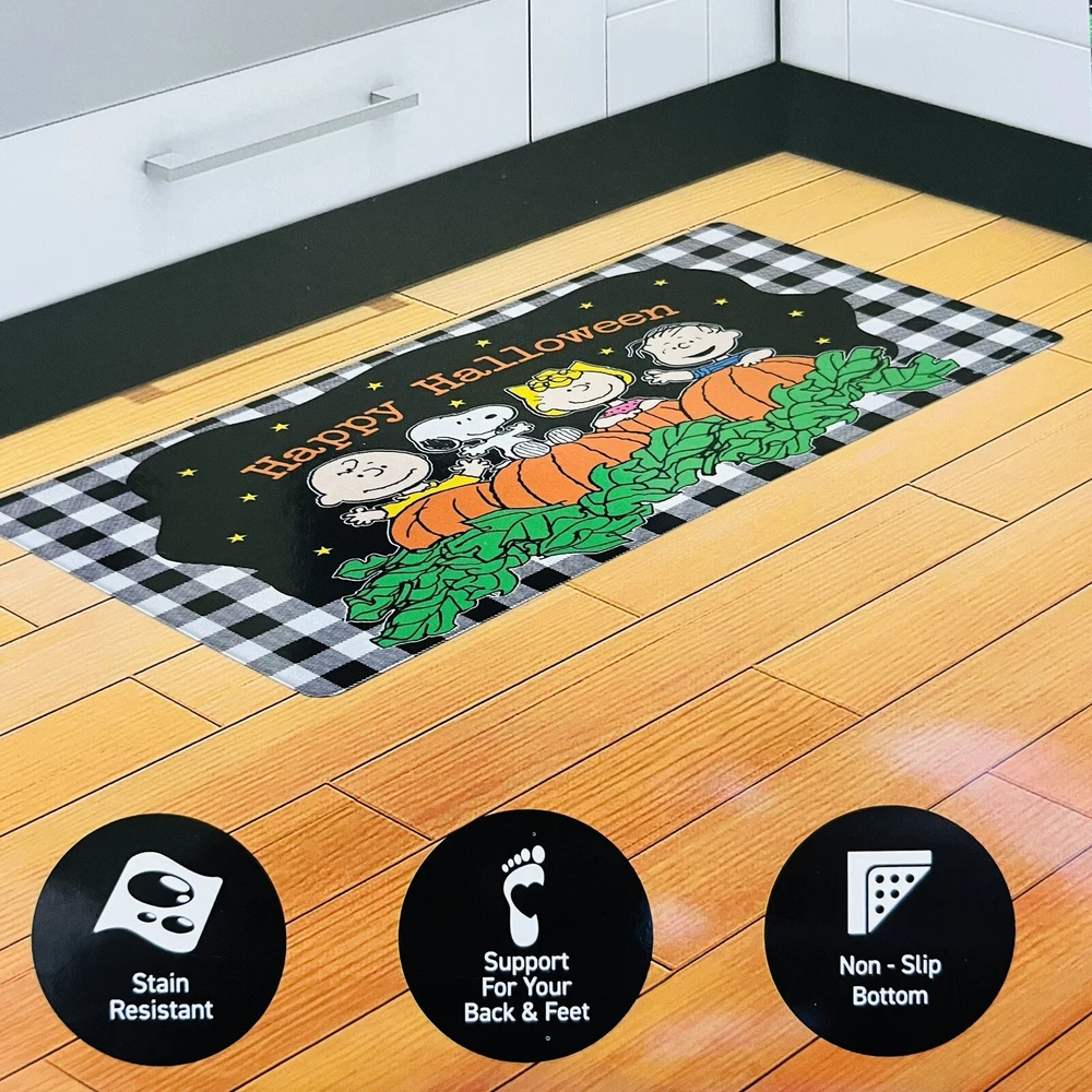 This anti-fatigue mat is a game-changer! The Halloween Snoopy design is adorable, and the cushioned support keeps my feet comfy while I work in the kitchen. Perfect size, great quality, and it adds a fun pop of holiday spirit. Love it!