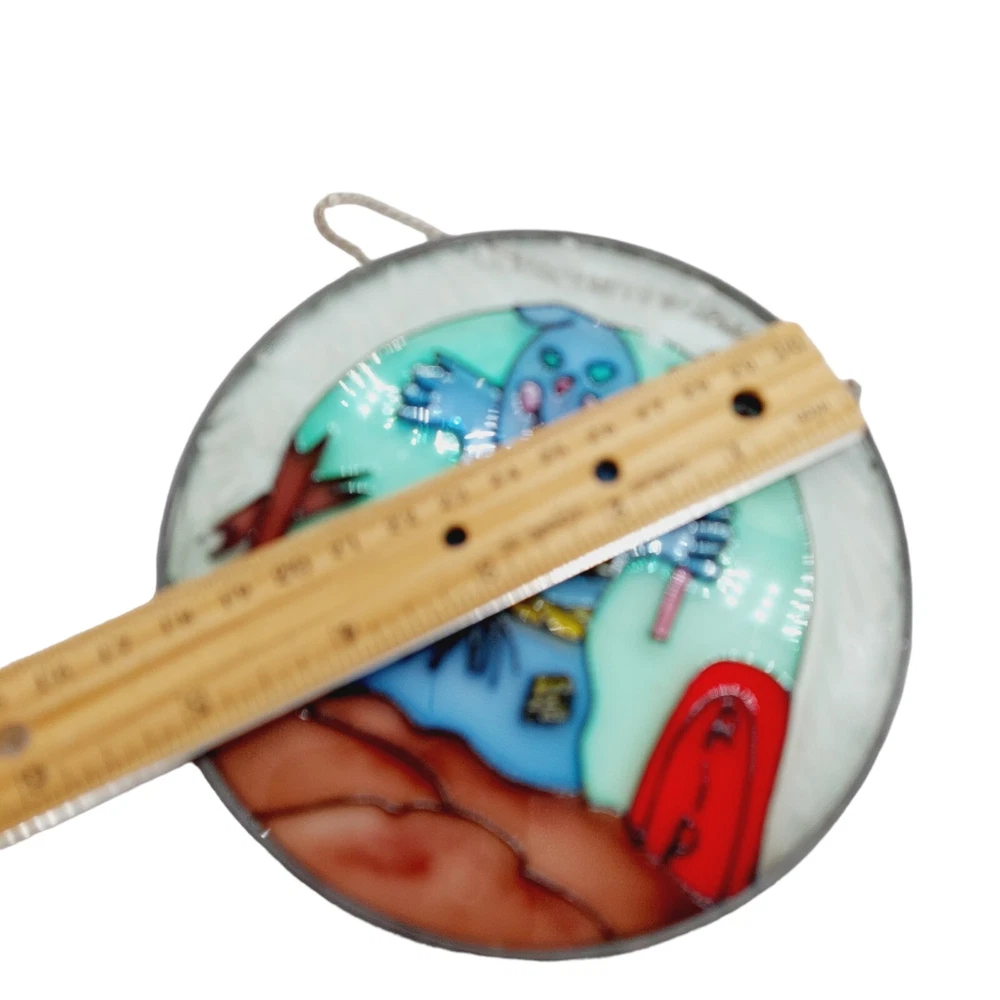Halloween Stained Glass Ghost Bat Gravestone Suncatcher Round READ