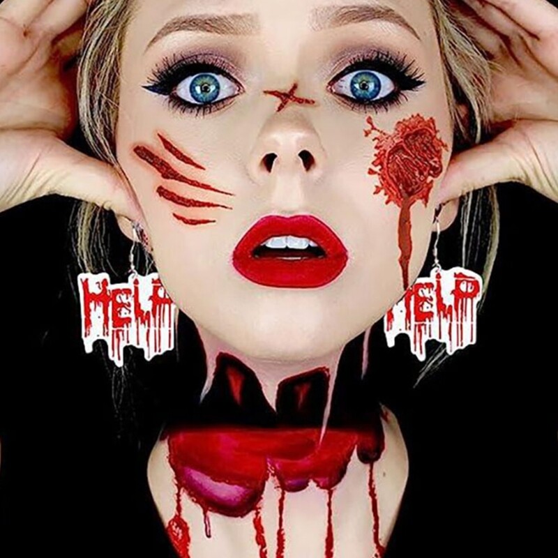 Features: Stand out this Halloween with these terrifying bloodstain earrings, for adding a touch of horror to your costume. Made from acrylic, these Halloween earrings are lightweight and comfortable to wear, ensuring you can enjoy the festivities all night long. Designed for both men and women, these versatile earrings are suitable for anyone looking to make a statement during the Halloween season. Whether you're attending a haunted house party or trick or treating with friend, these bloodstain earrings will your spooky look and impress everyone around you. the of Halloween with these bloodstain earrings, and let your creativity as you transform into a truly terrifying character. Specifications: Acrylic Length: Approx. 2.36-2.76inch(6-7cm) Package Includes: 1 Pair Halloween Earrings note: Please allow 1-2cm errors due to manual measurement. Due to the difference between different monitors, the picture may not reflect the actual color of the item.