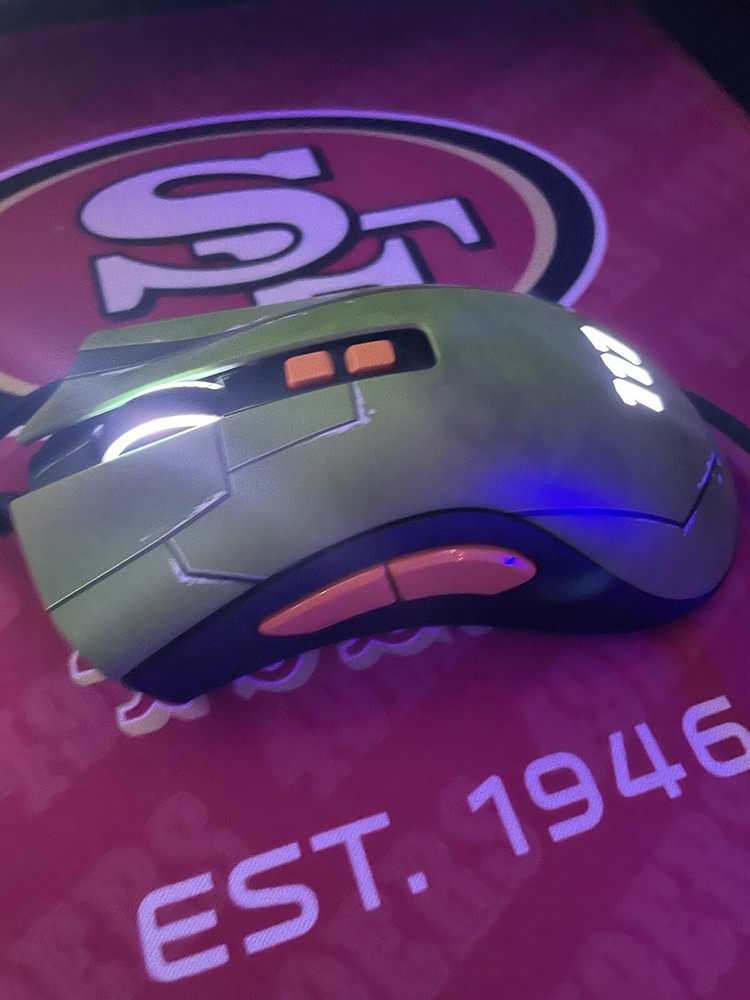 HALO MOUSE ( SCRATCHES AND MARKS PART OF DESIGN Razors halo mouse is perfect for your collection or use, it has rgb lighting and yes, the scratches and marks are part of the design you can look it up