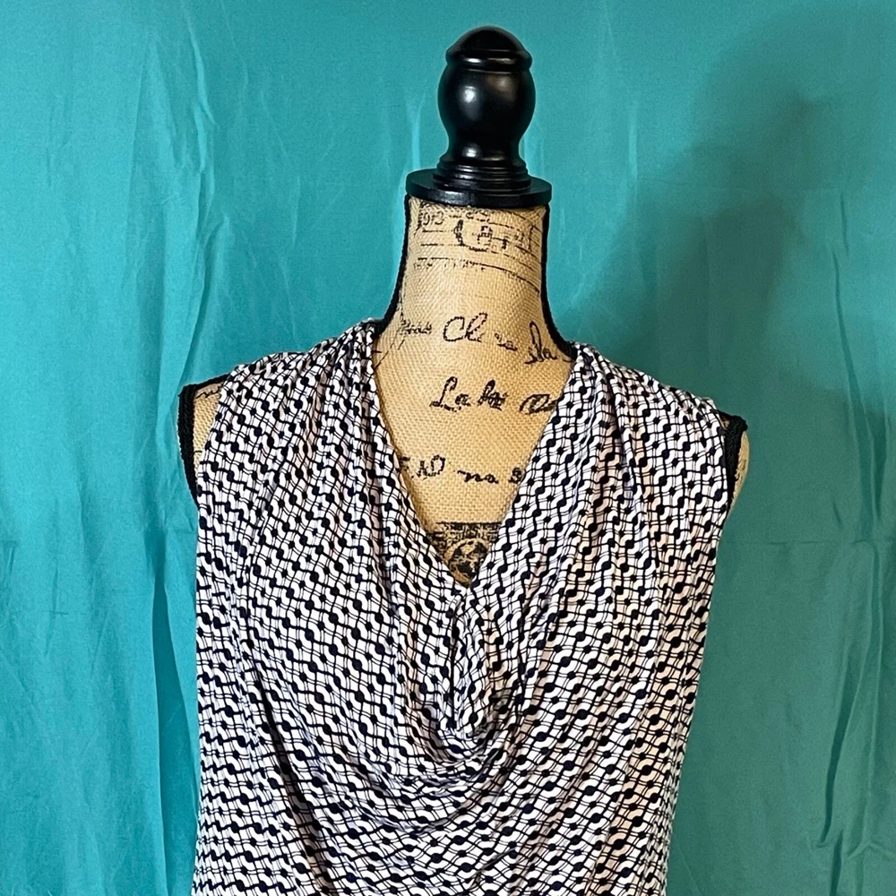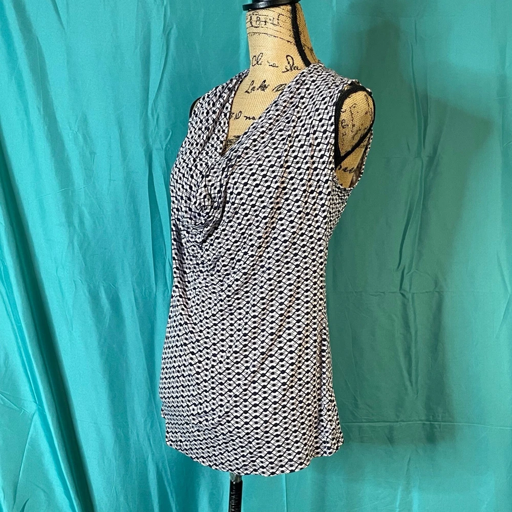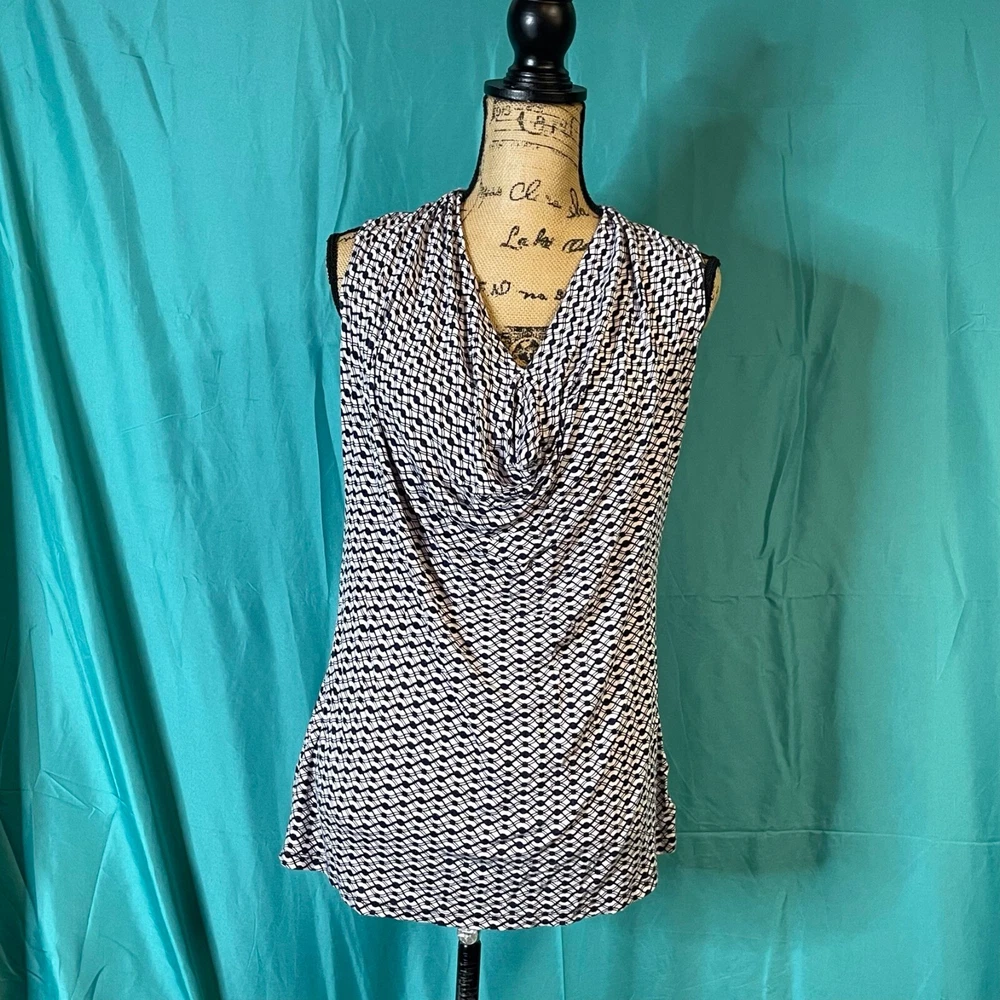 Halogen Womens Blouse Black White Medium Cowl Neck Sleeveless Pullover #08404 In very good condition Measurements (Please see photos for measurements) - Length: Front length, center top-to-bottom - Rear Length: Rear, center top-to-bottom - Width: Across the font chest, armpit seam-to-seam Wondering if our item will be a good fit? We recommend measuring a similar item in your wardrobe and comparing those measurements to ours. (Please keep in mind that our measurements may differ slightly from your own)